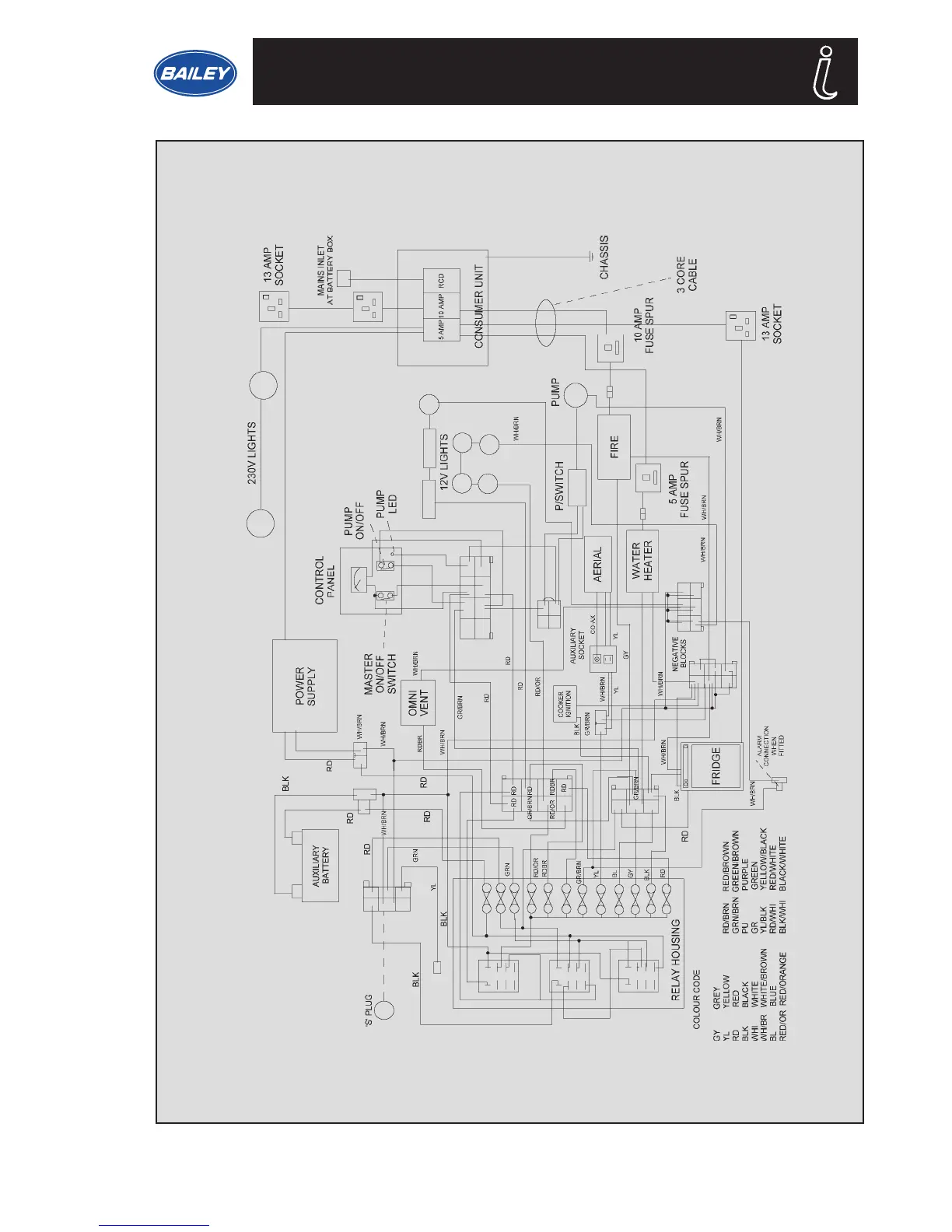 Bailey 2002 Series - 230 Volt and 12 Volt Primary Circuit Diagram - Pageant