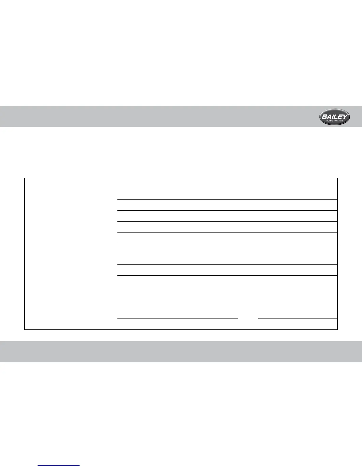 In order for the warranty to remain valid the caravan must have been serviced annually by an authorised Bailey Service Centre prior to the transfer of