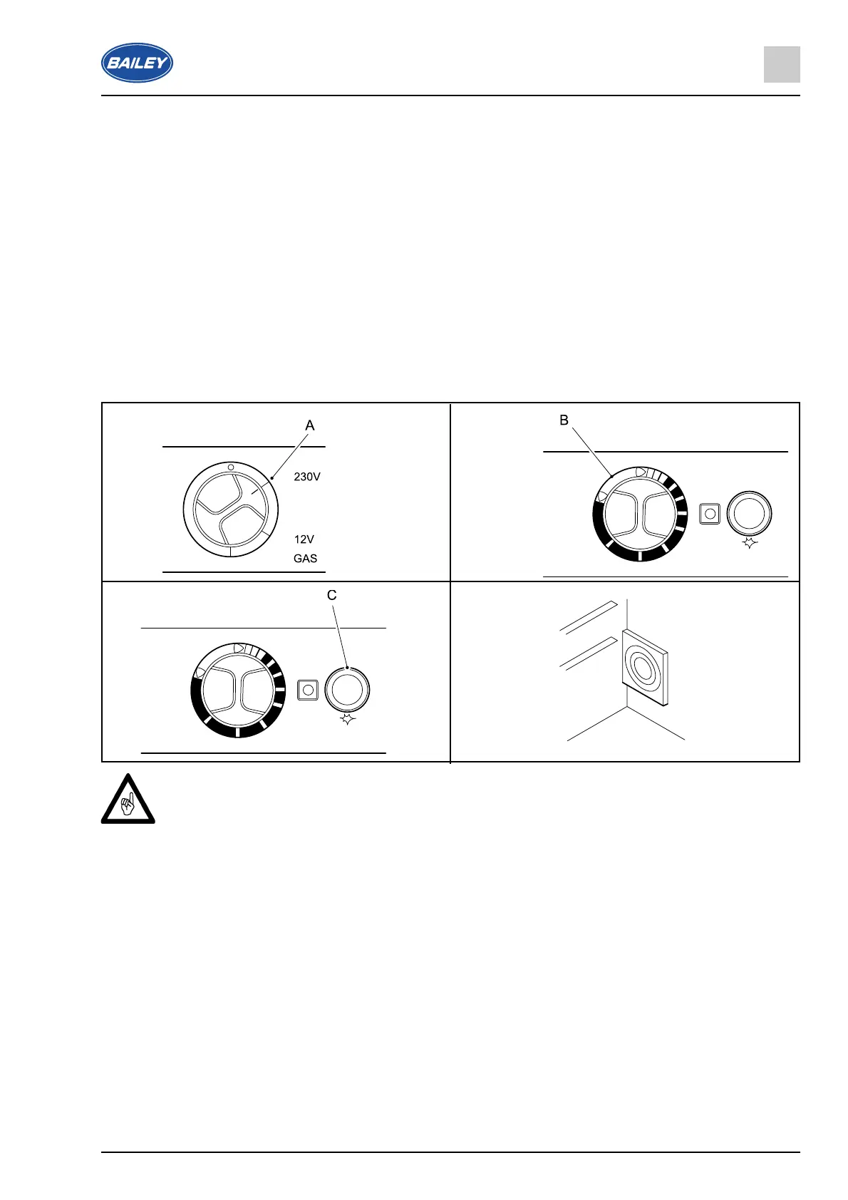 7. Release igniter button (C). Keep rotary switch (B) depressed for another 10-15 seconds, then