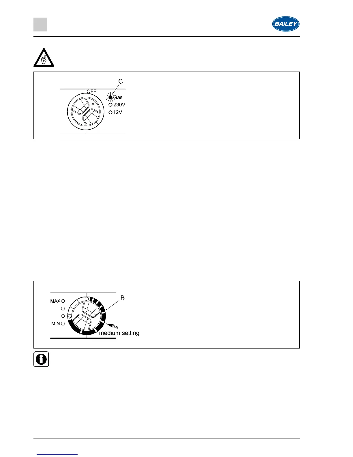 If after about 30 seconds the operating display (C) starts flashing red again, the gas fault has
