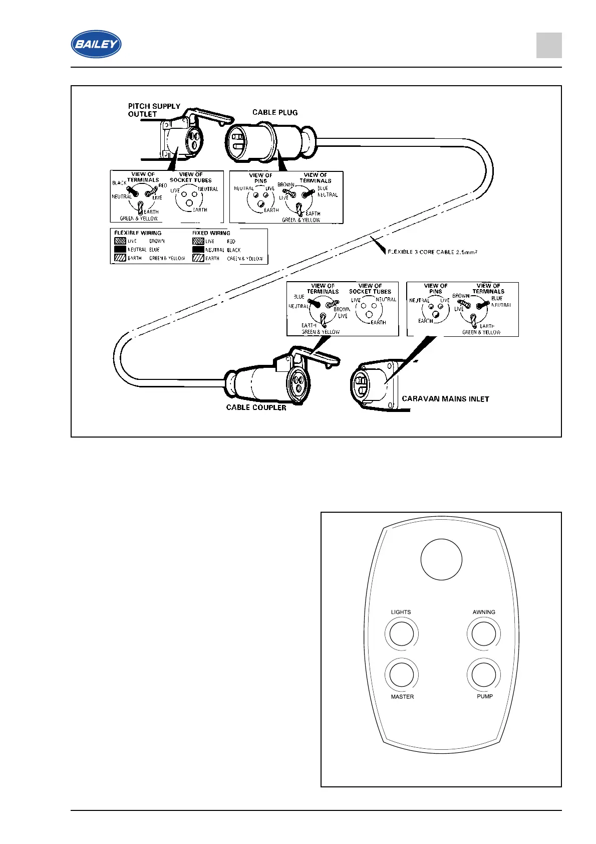 12 volt DC. This enables the 12 volt equipment in the caravan to function.
