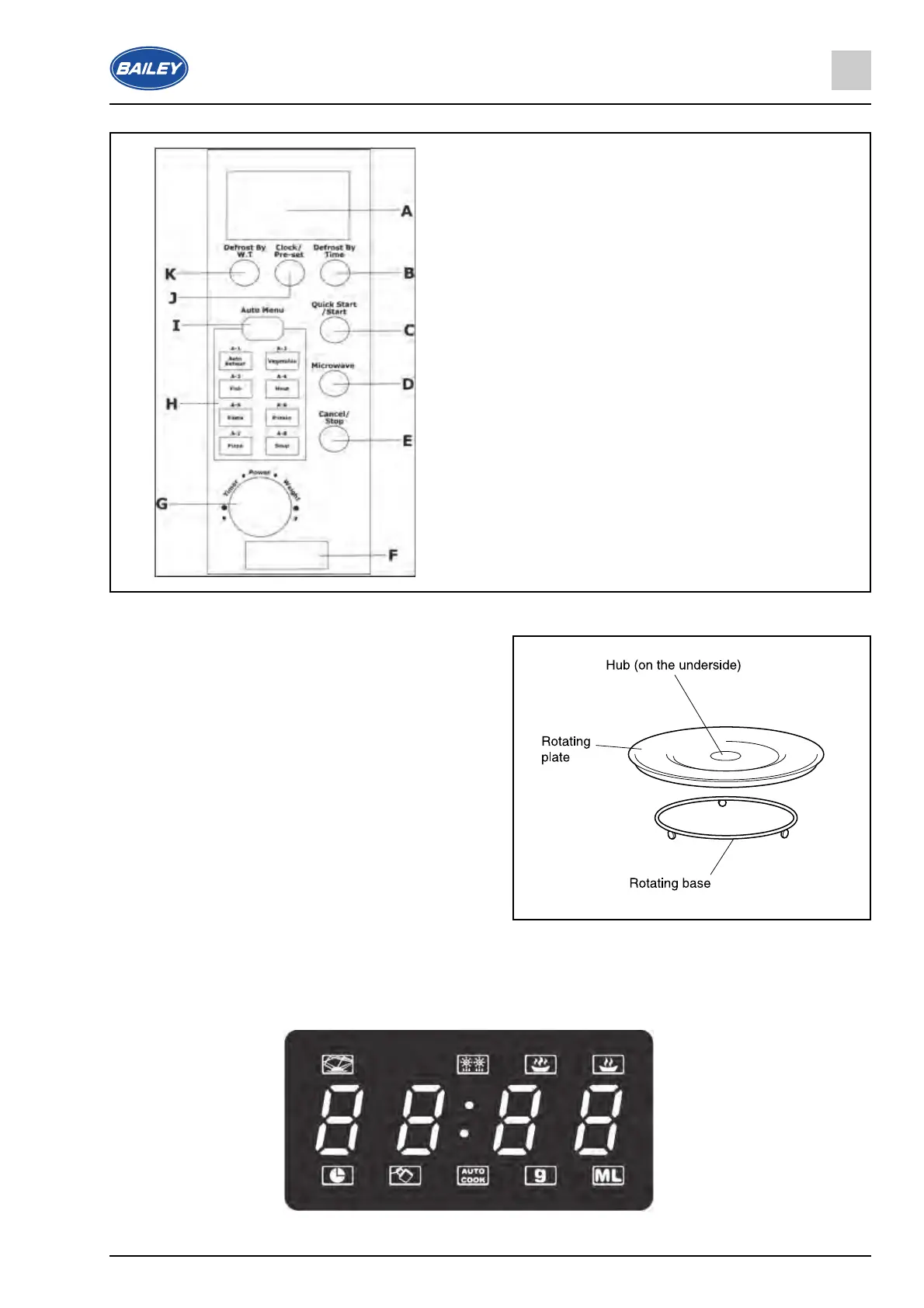 ● The LED display will show the time of day, or if the microwave is in use, it will show the cooking