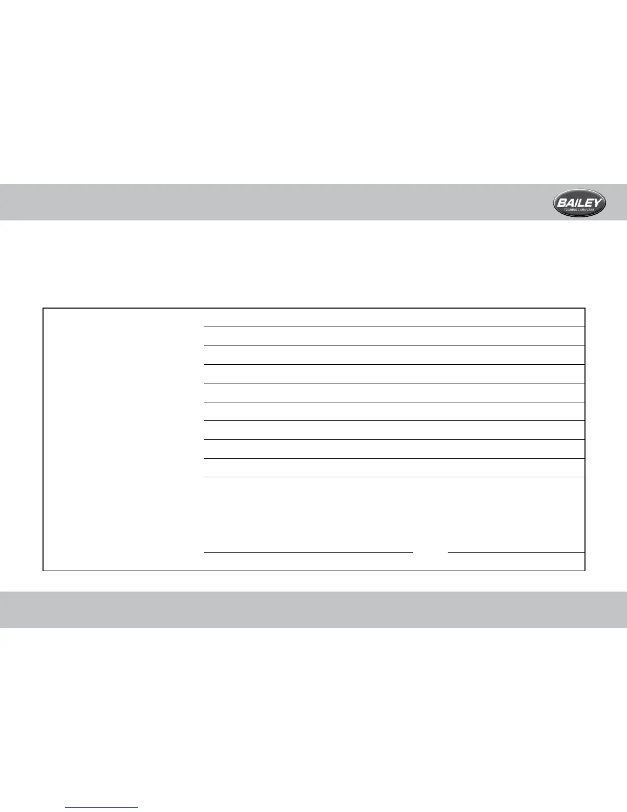 In order for the warranty to remain valid the caravan must have been serviced annually by an authorised Bailey Service Centre prior to the transfer of