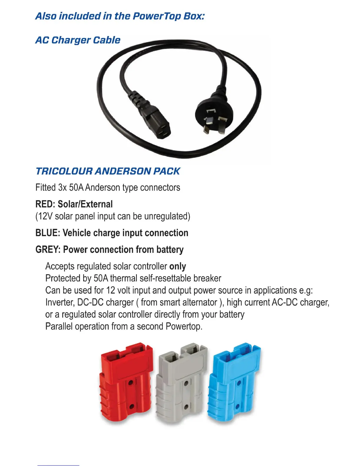 Baintech PowerTop V3 - Also Included in the Box; AC Charger Cable; Tricolour Anderson Pack