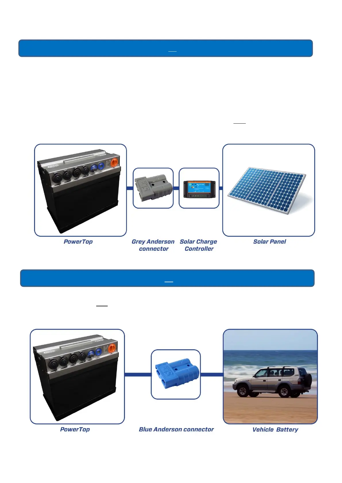 other end of the cable to the Blue Anderson Plug on the PowerTop labelled Vehicle charge input. Fuse the cable at