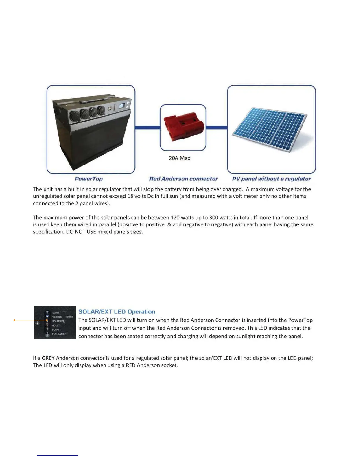 regulator it must be connected to the Red Anderson Connector input labelled Solar/External Charge.