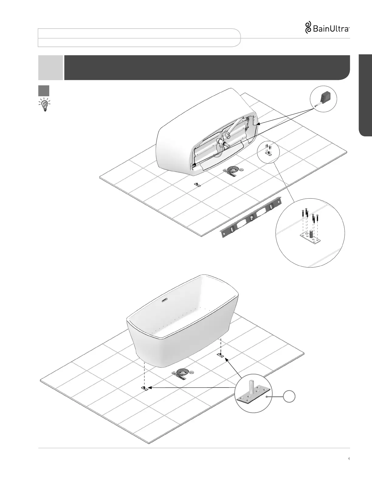 • Carefully place the tub on