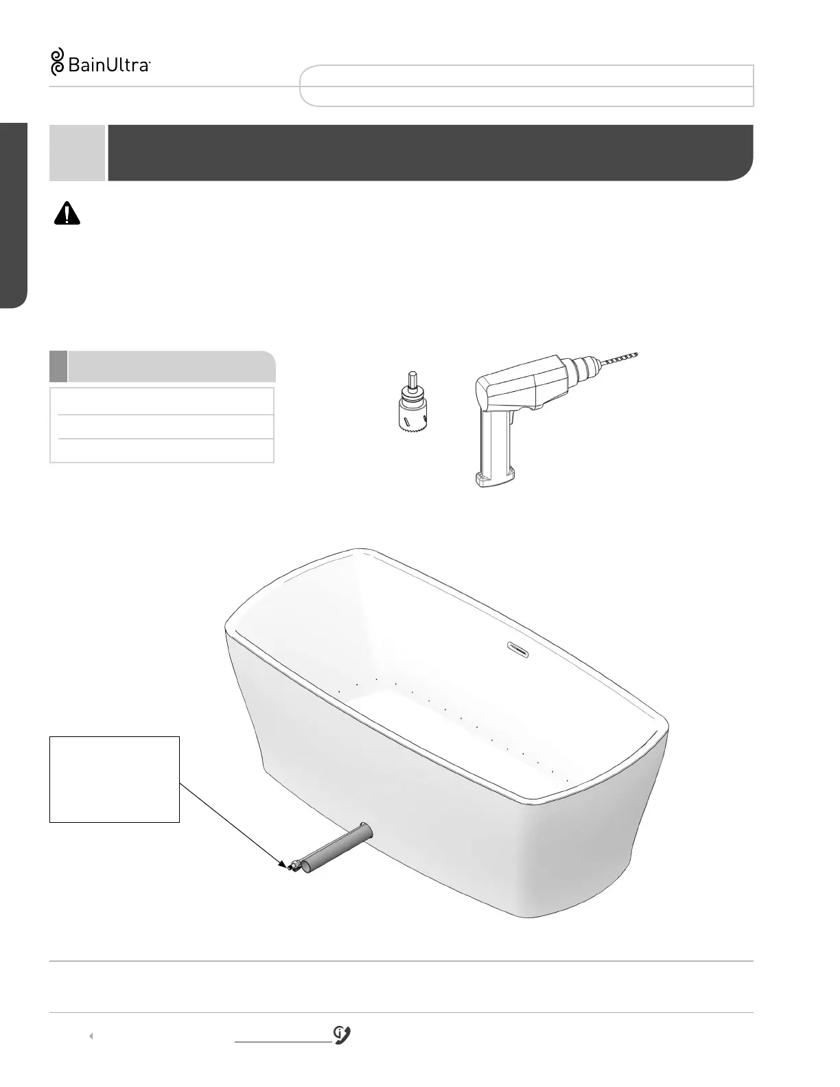 • Be careful not to drill the inside shell of the bath.