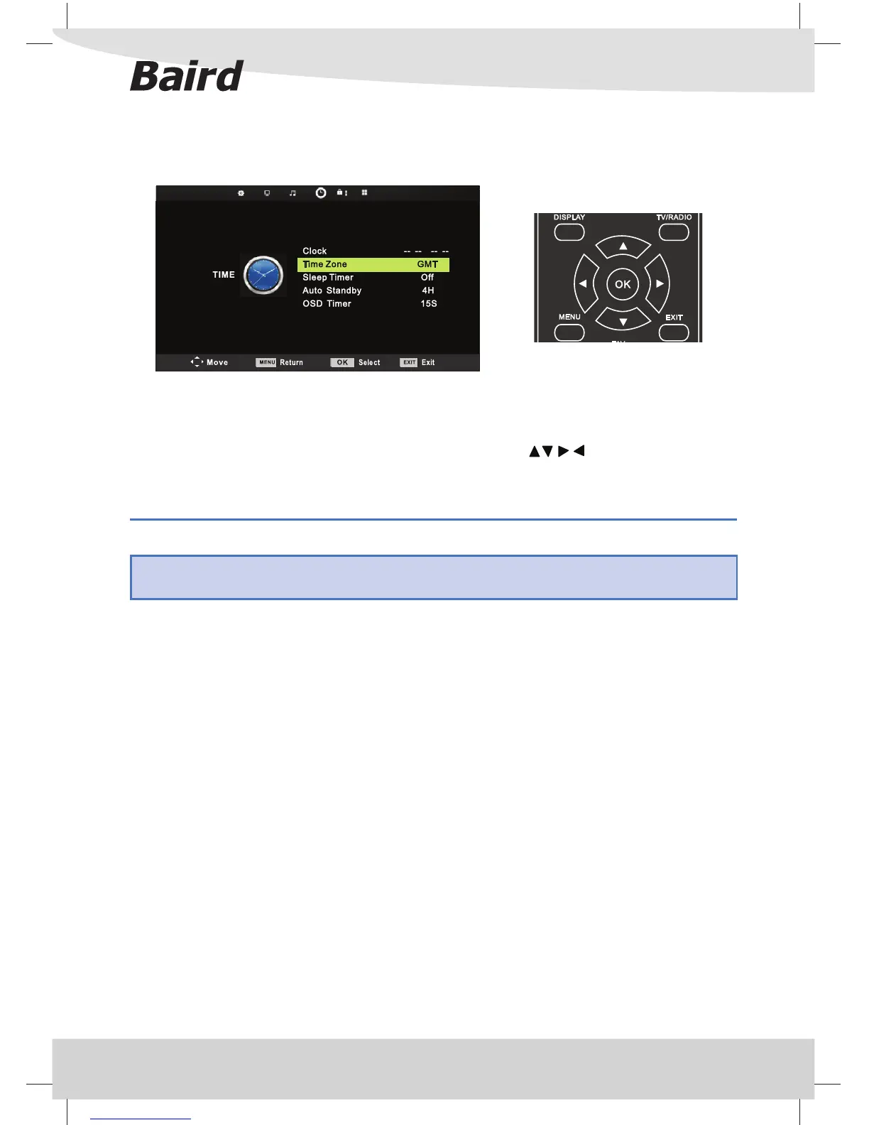 Tip: If you are receiving a Digital TV signal your date and time will be set automatically and this function will