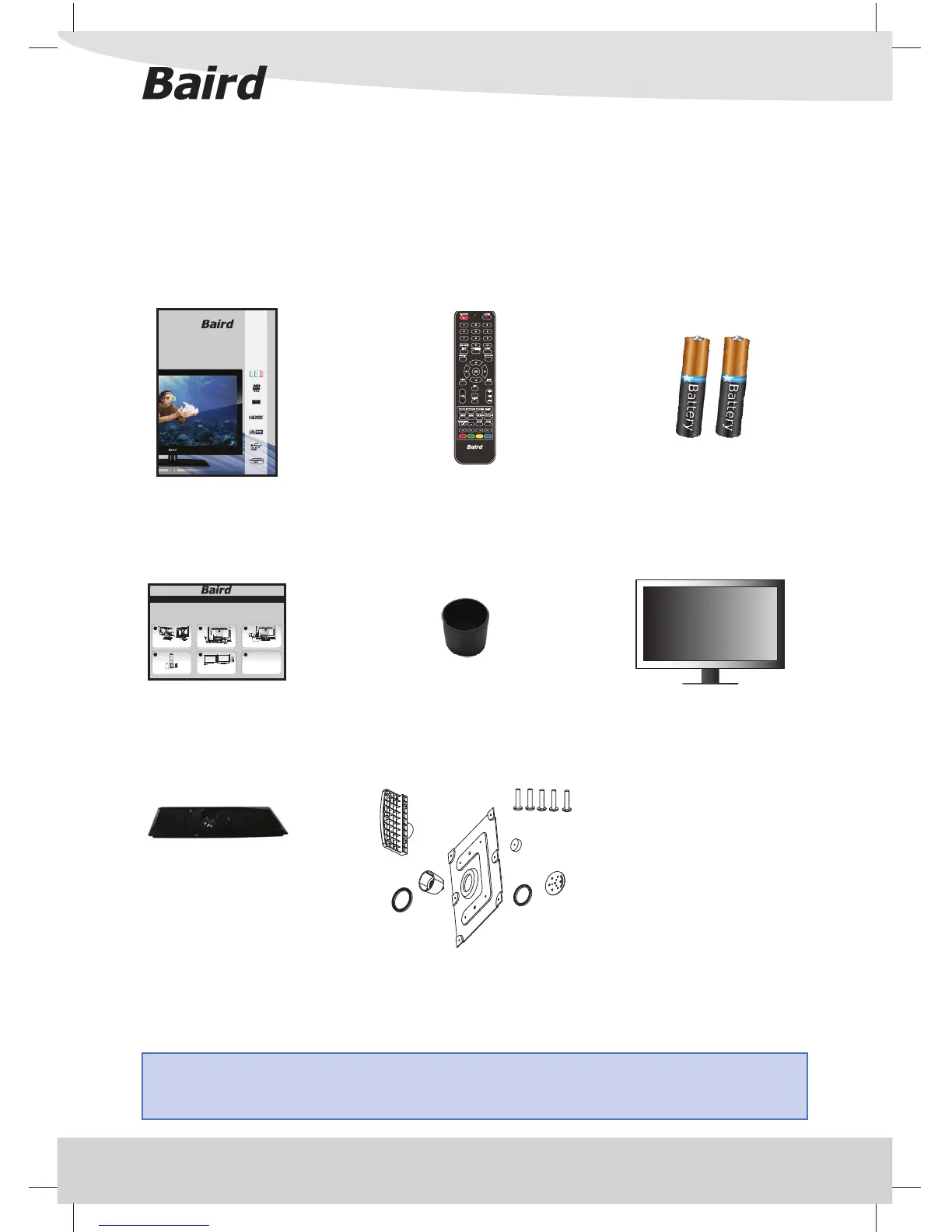 Thank you for purchasing this Baird TV. Remove the TV from the packaging and proceed with the following steps for best results.