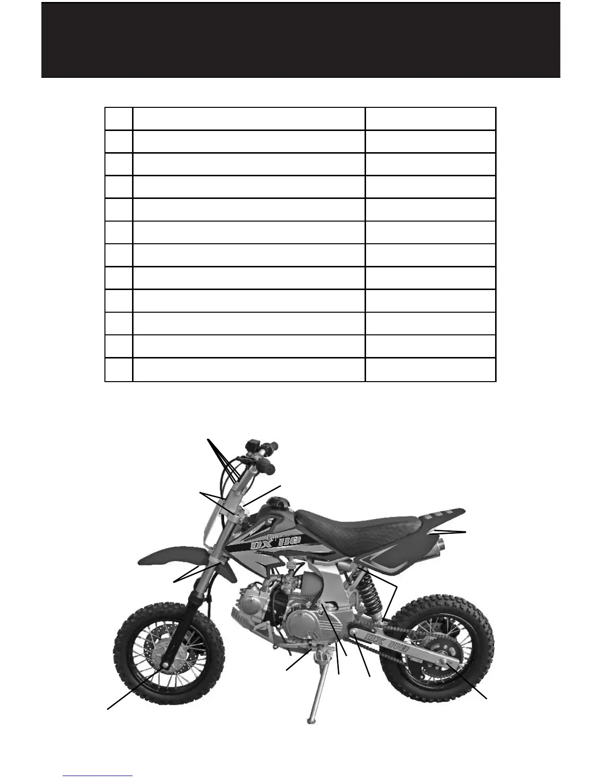 1 Front wheel axle bolt 12mm 37-44 ft.lb. (50-60 Nm)