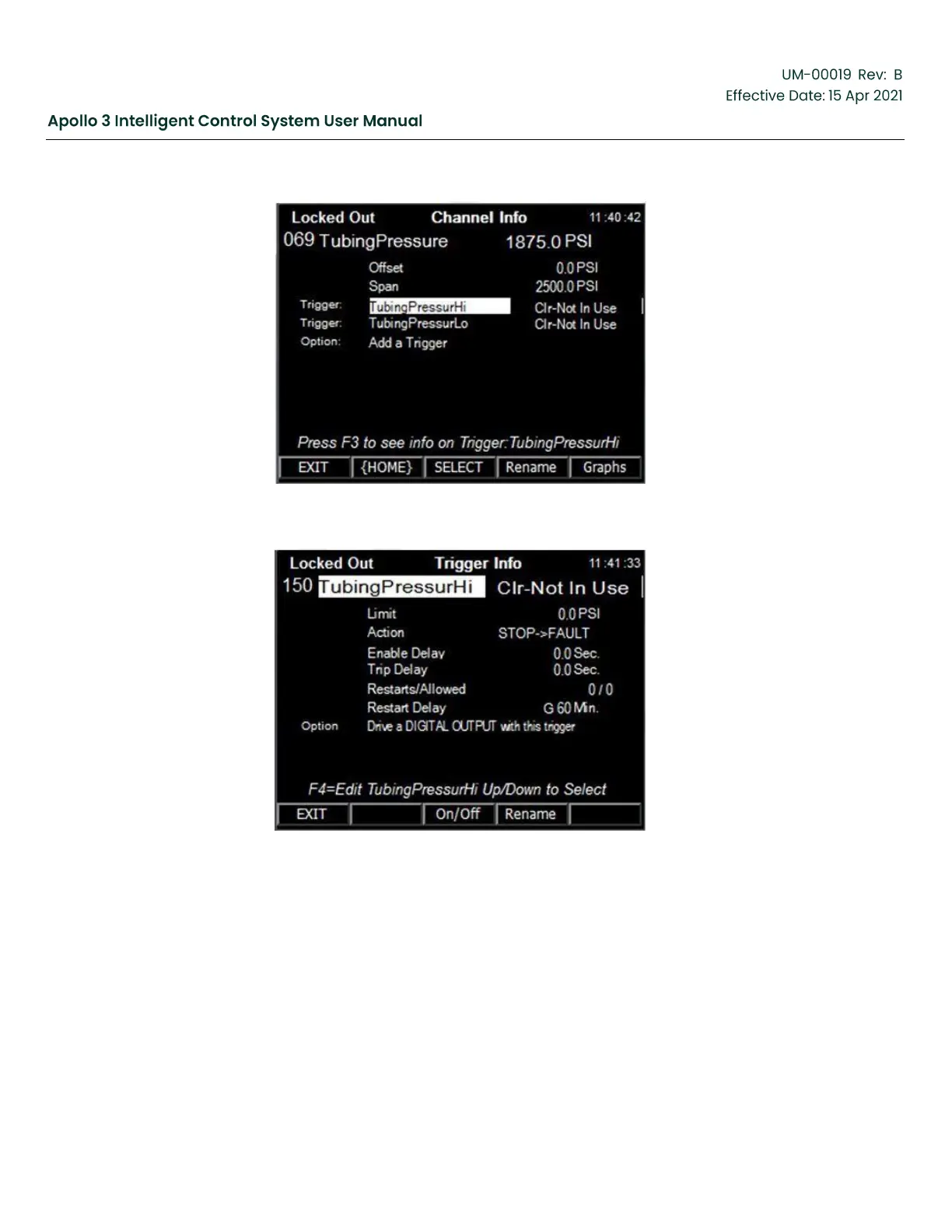 Baker Hughes Apollo 3 - Trigger Info Screen