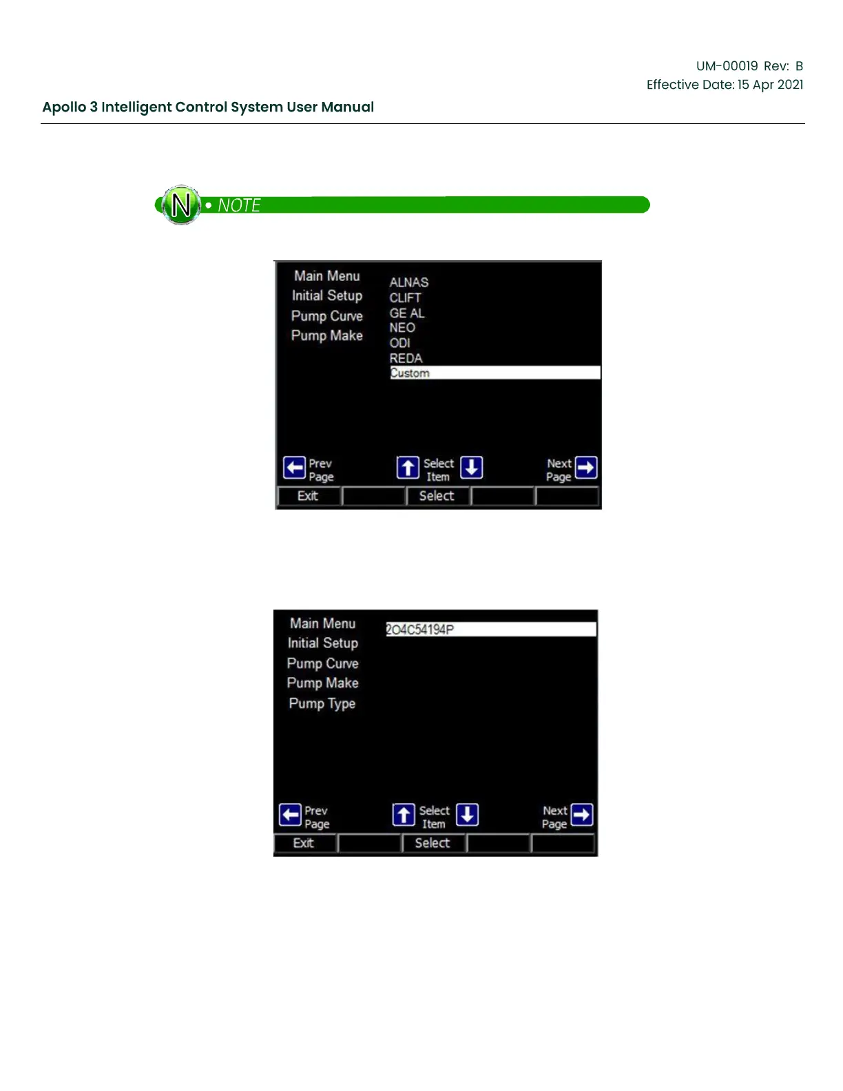 The Serial number of any custom pumps that have been installed will appear. Highlight the desired pump