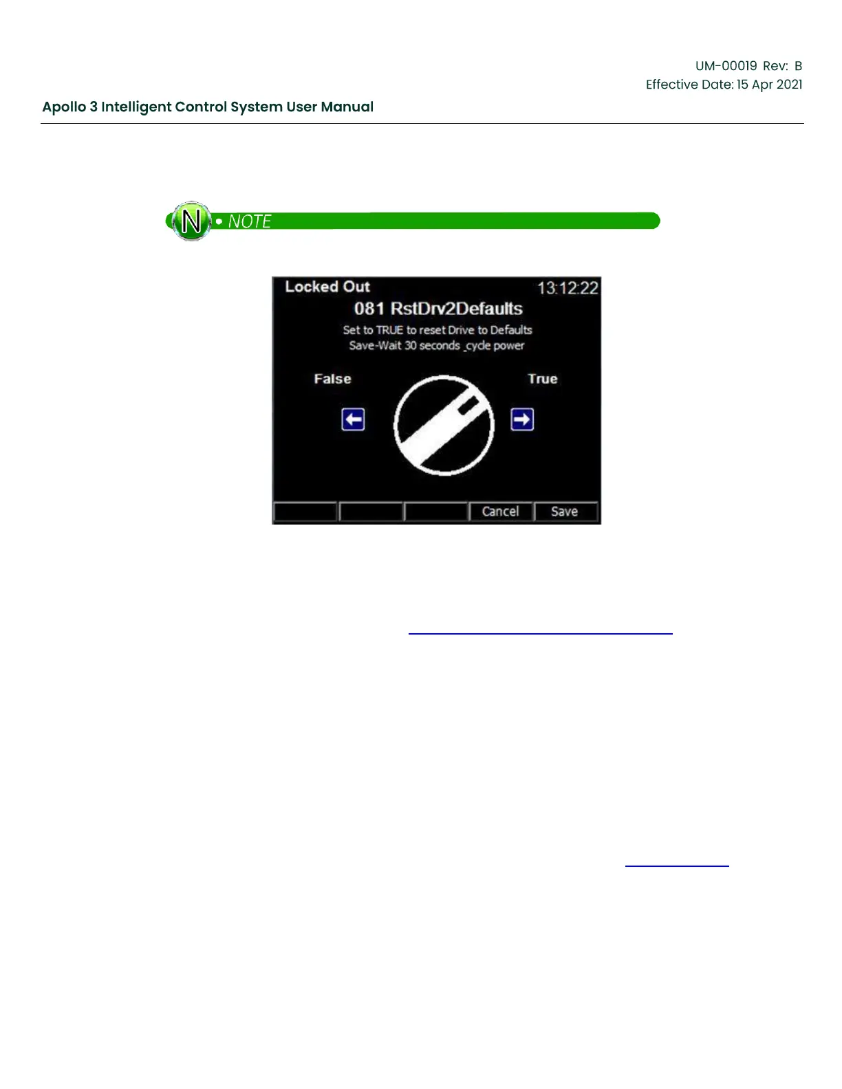 Press the Save function button and Confirm the changes. Wait at least 30 seconds. Then power the drive
