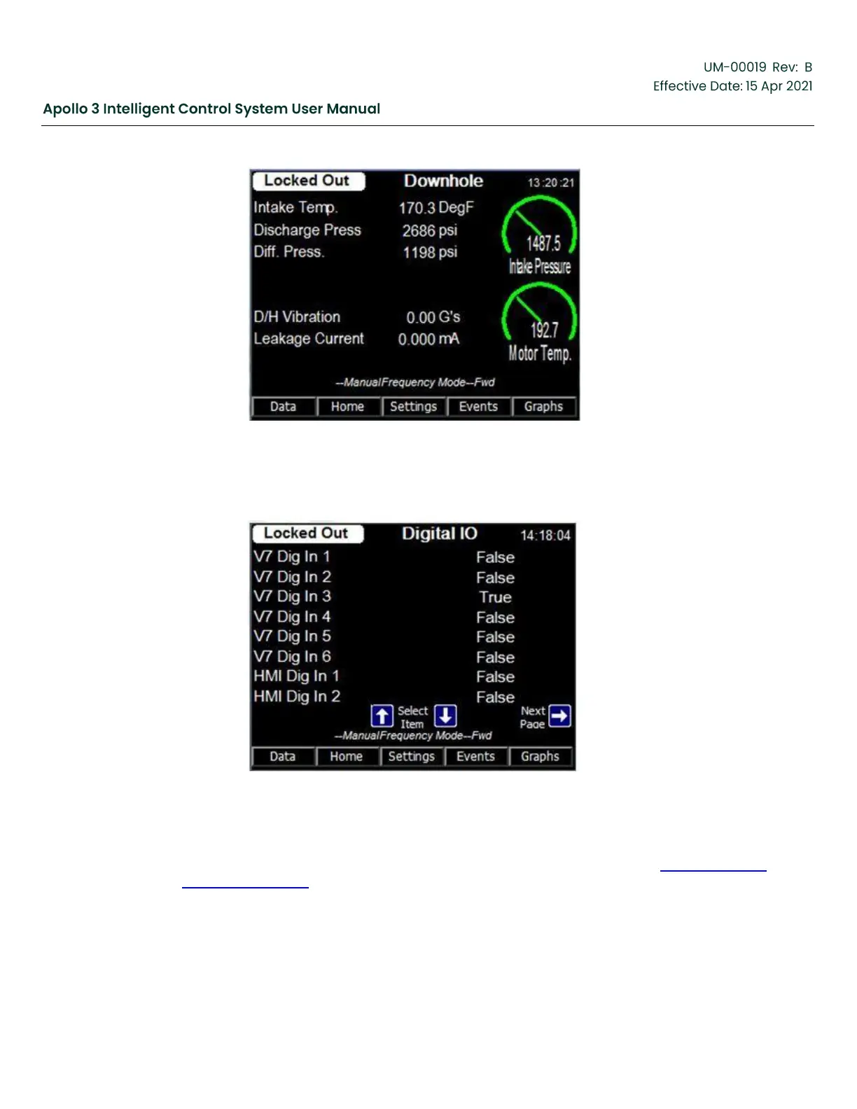 The Digital I/O screen displays the state of all the digital inputs in the system. Figure 37: Digital