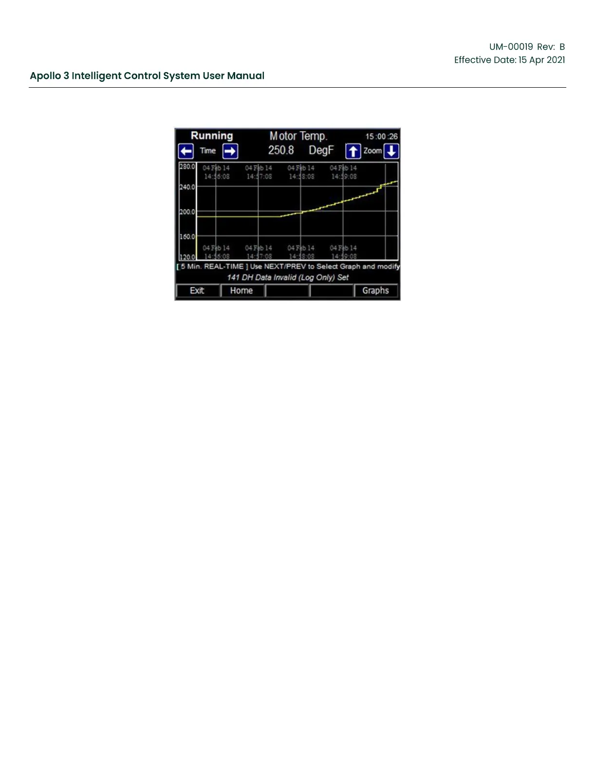 The Graph Screen displays the historical data in a graphical format. Each parameter on the data
