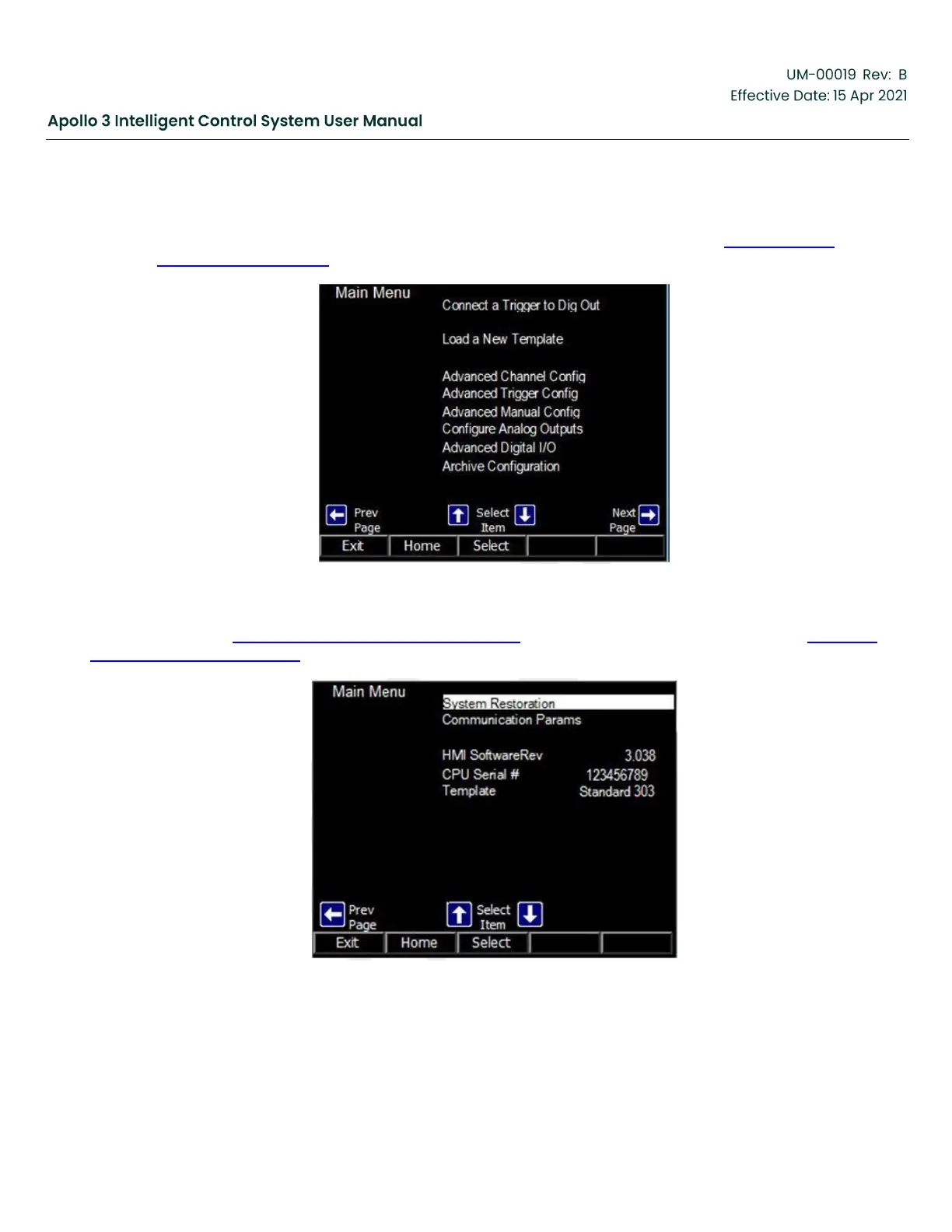 to change. The image shown below is the second screen of the Main Menu. See Figure 60: Main