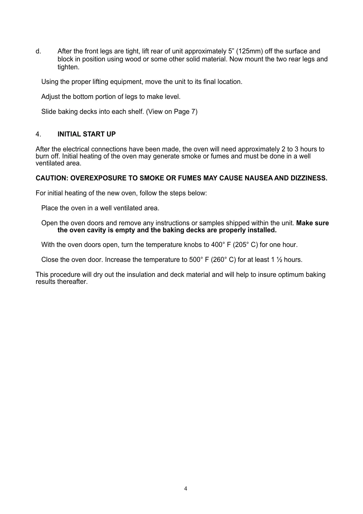 burn off. Initial heating of the oven may generate smoke or fumes and must be done in a well
