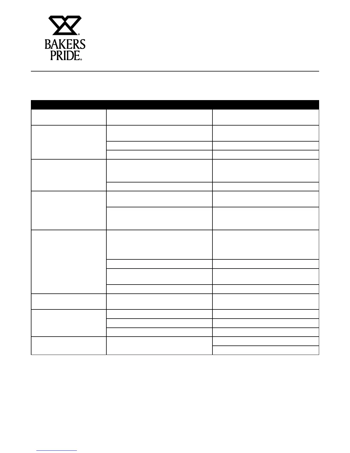 Bakers Pride Y600 - Troubleshooting Chart