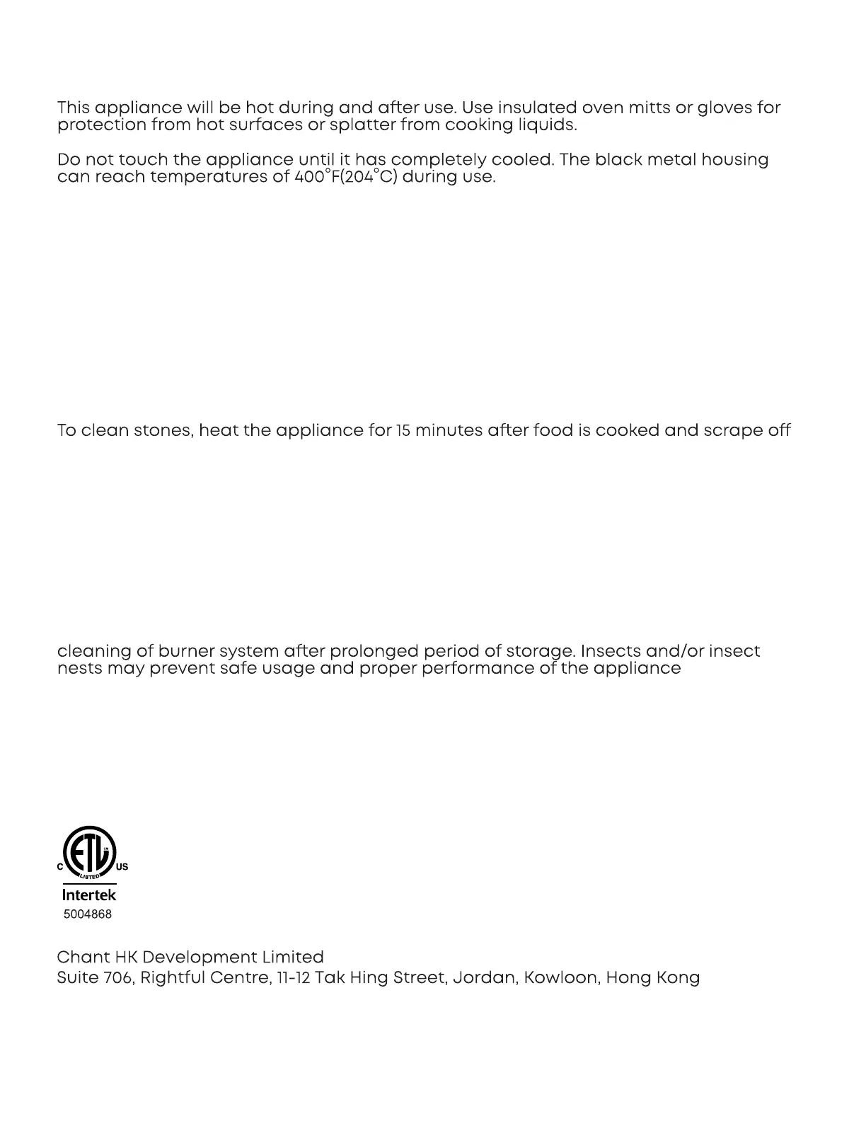 Stones are fragile and can break if dropped. The appliance becomes extremely hot, do
