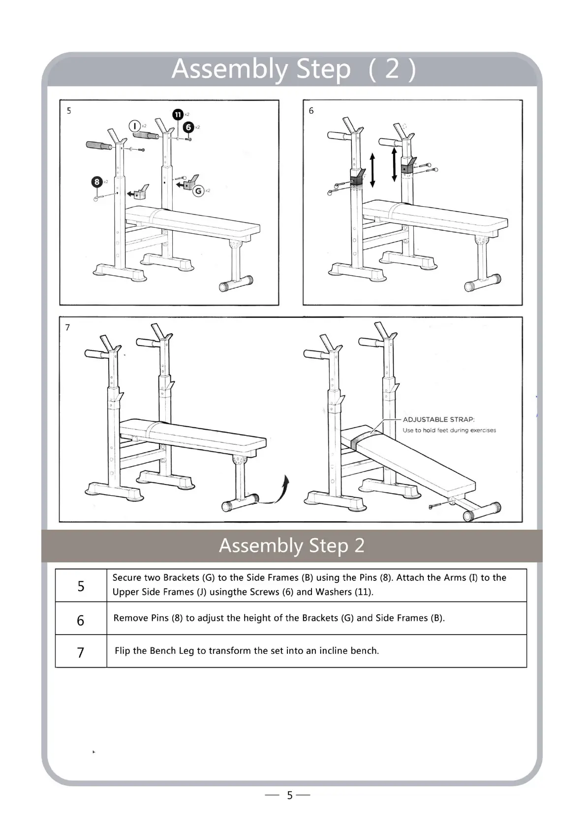 BalanceFrom Everyday Essentials RS40 - Assembly Steps (Part 2); Secure Brackets and Attach Arms; Adjust Height and Transform Bench