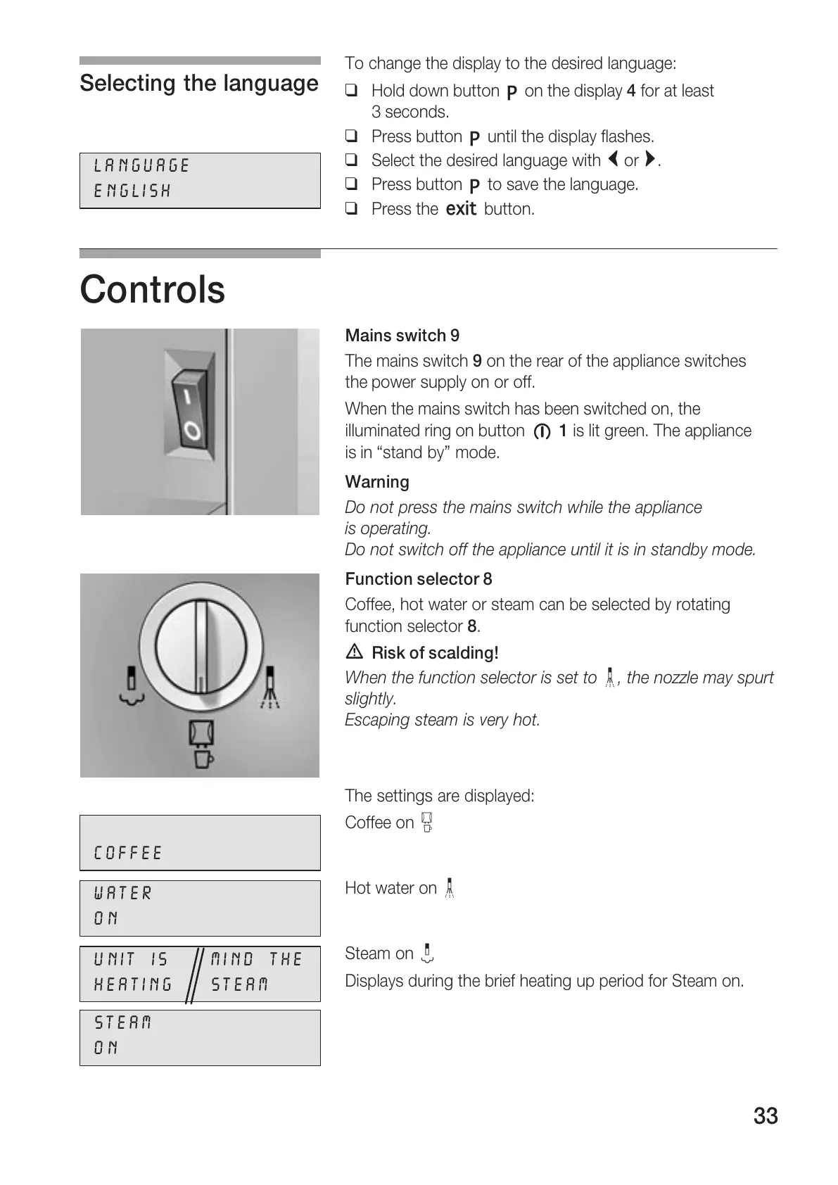 BALAY 3CF458X - Mains Switch and Function Selector Operation
