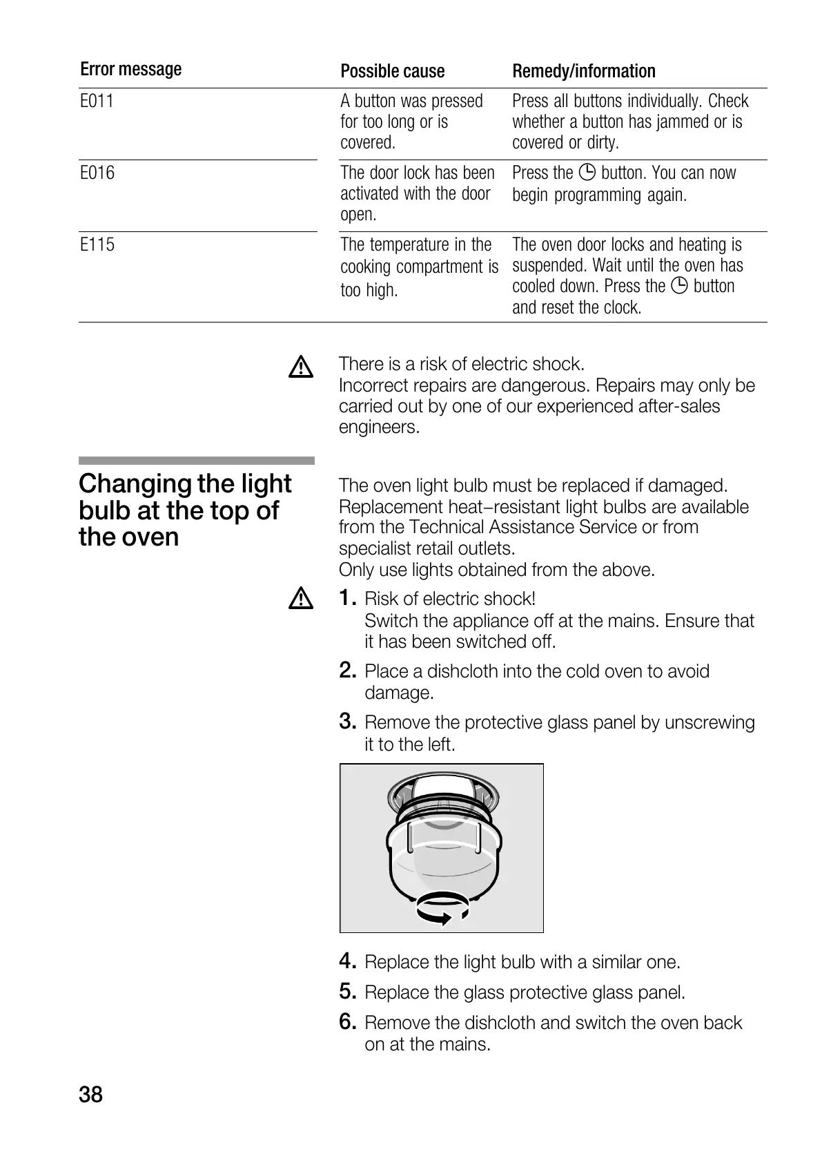 BALAY 3HB558XP - Troubleshooting guide; Malfunction table and error messages