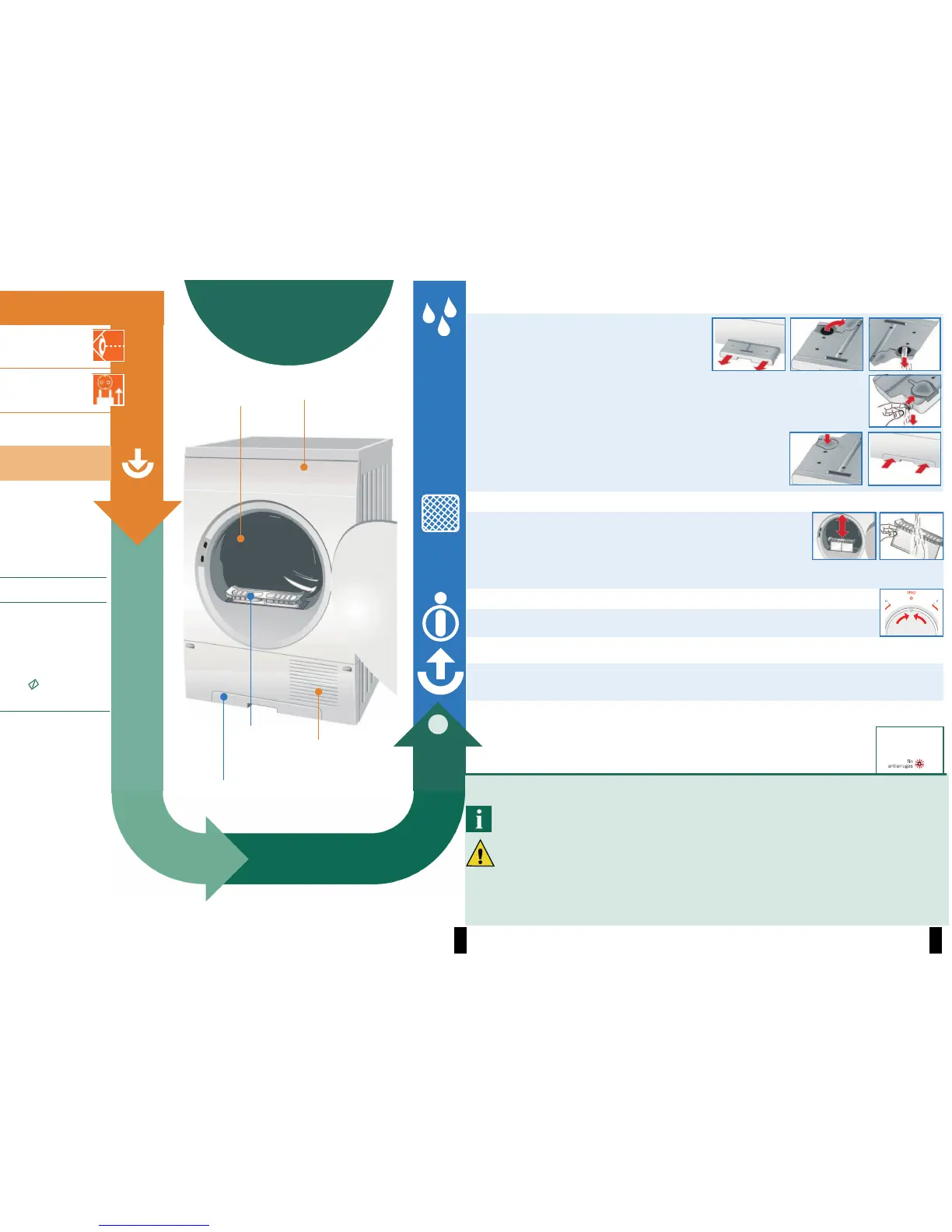 If the fluff filter is heavily soiled or blocked, rinse it with warm water,