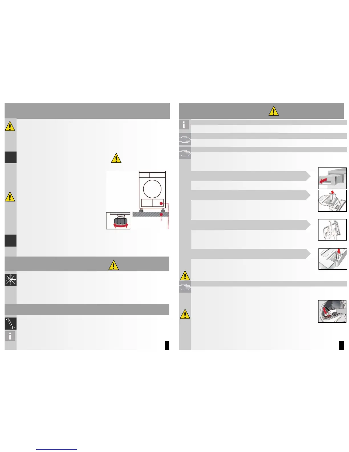 – Make the dryer level using the threaded feet
