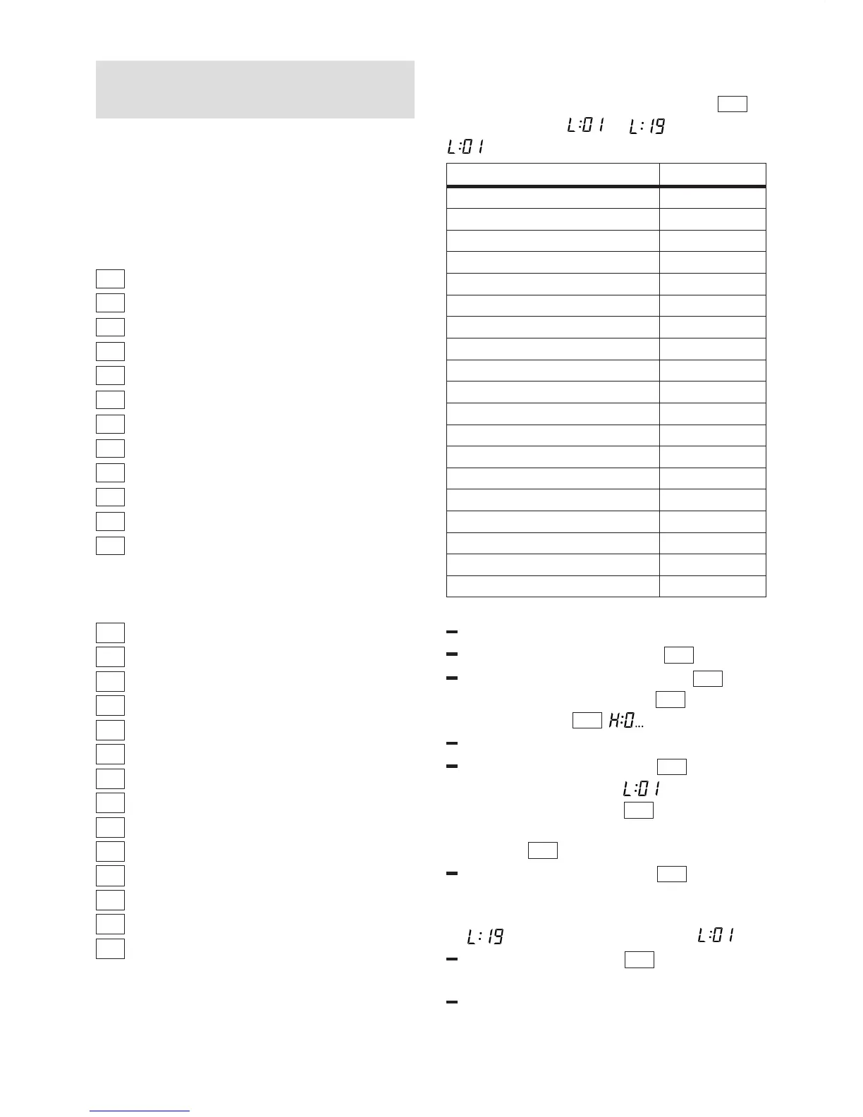 Programme buttons **