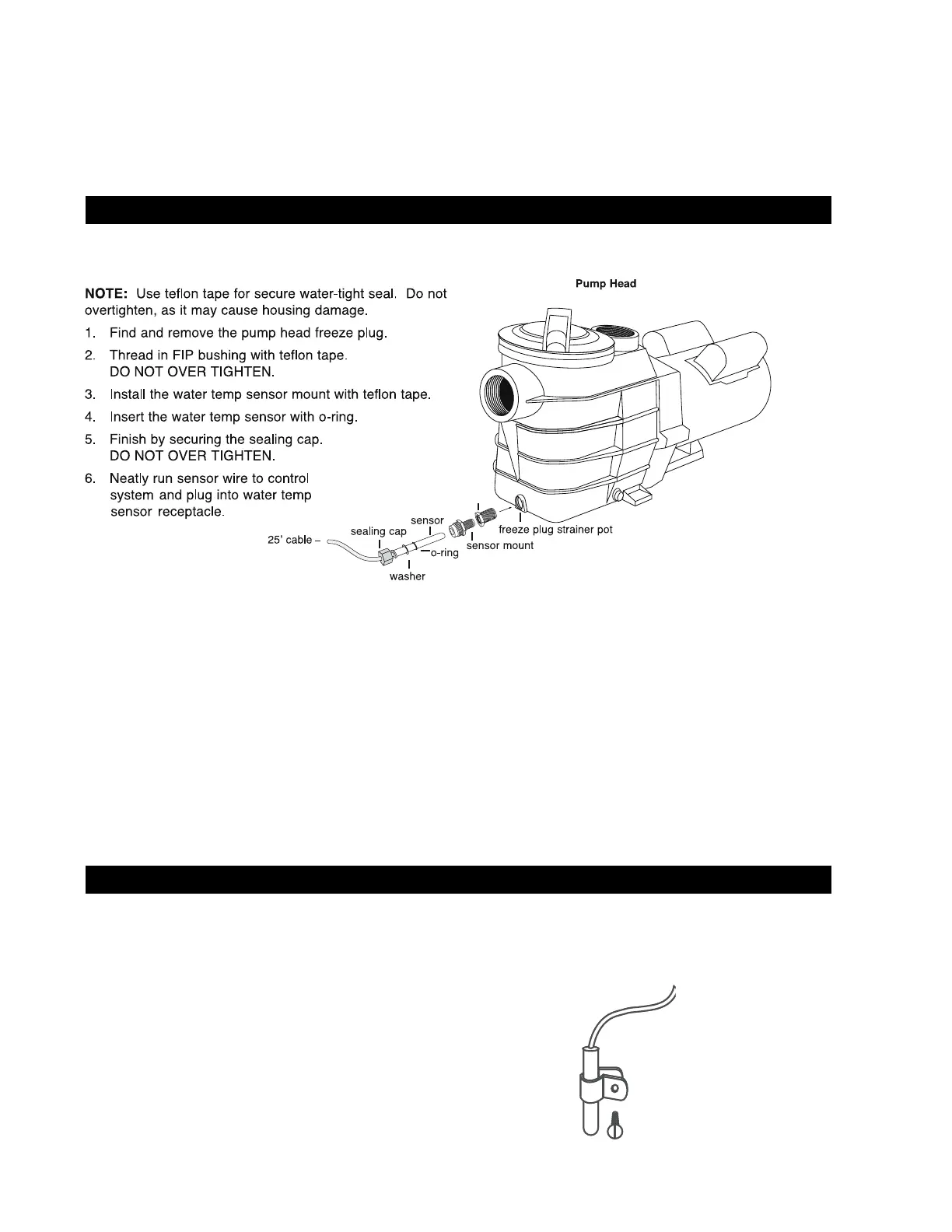 The Pool System uses high quality 30K ohm thermistor type temperature sensors. Two sensors are provided (one for