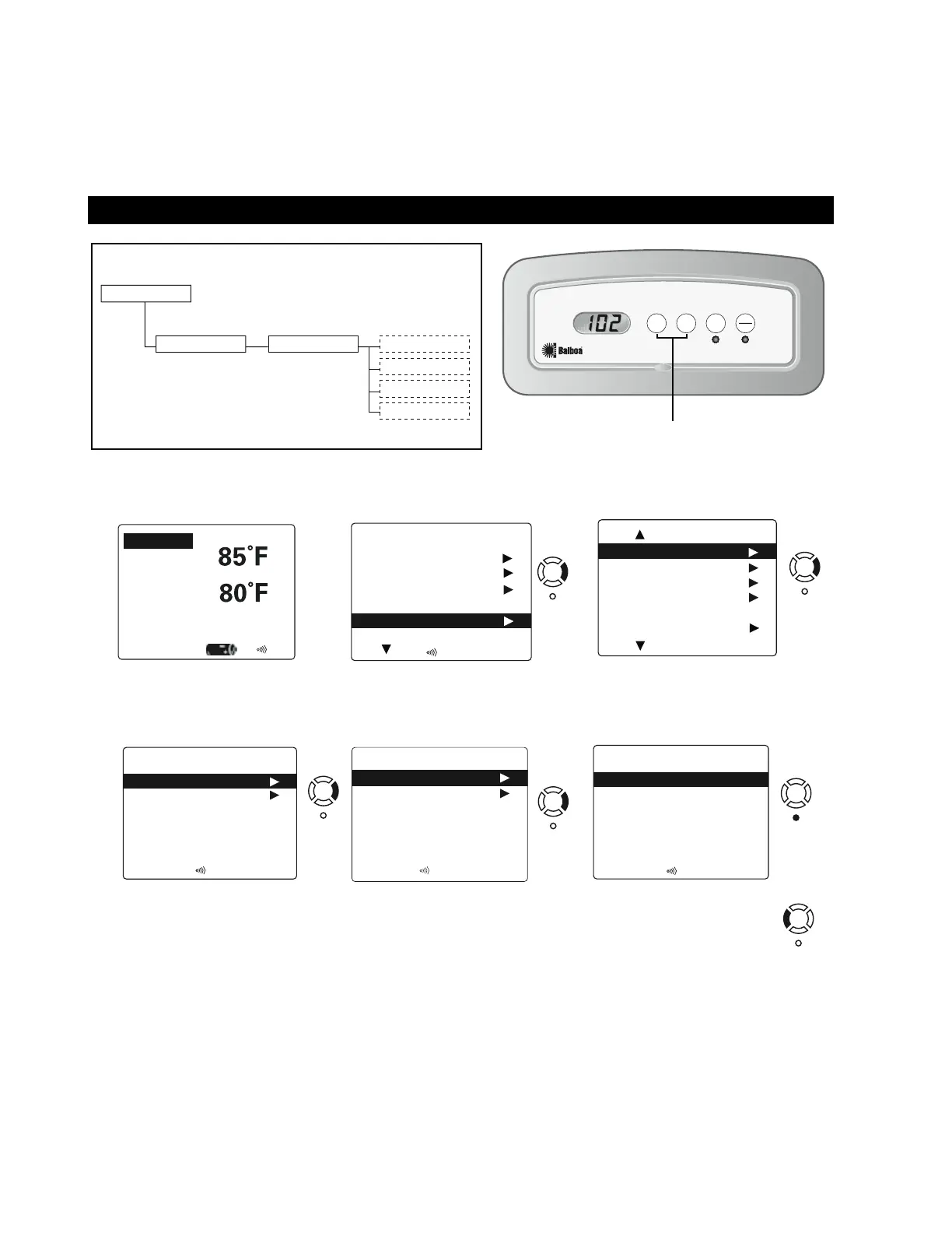 In this case (Menu 6), Heater is highlighted. Press Select to assign the Heater for the āSpa Panel Btn 1ā as requested in