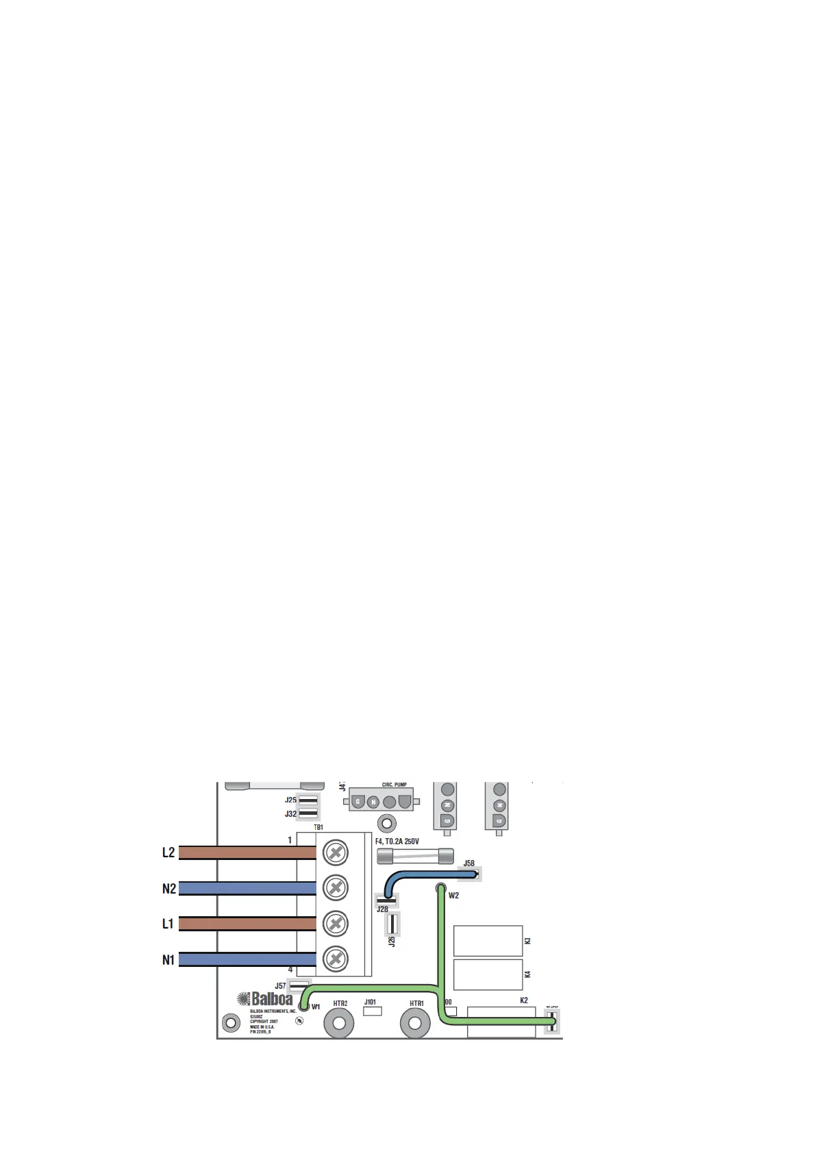 The heater runs on service line L1, while all other equipment, such as pumps