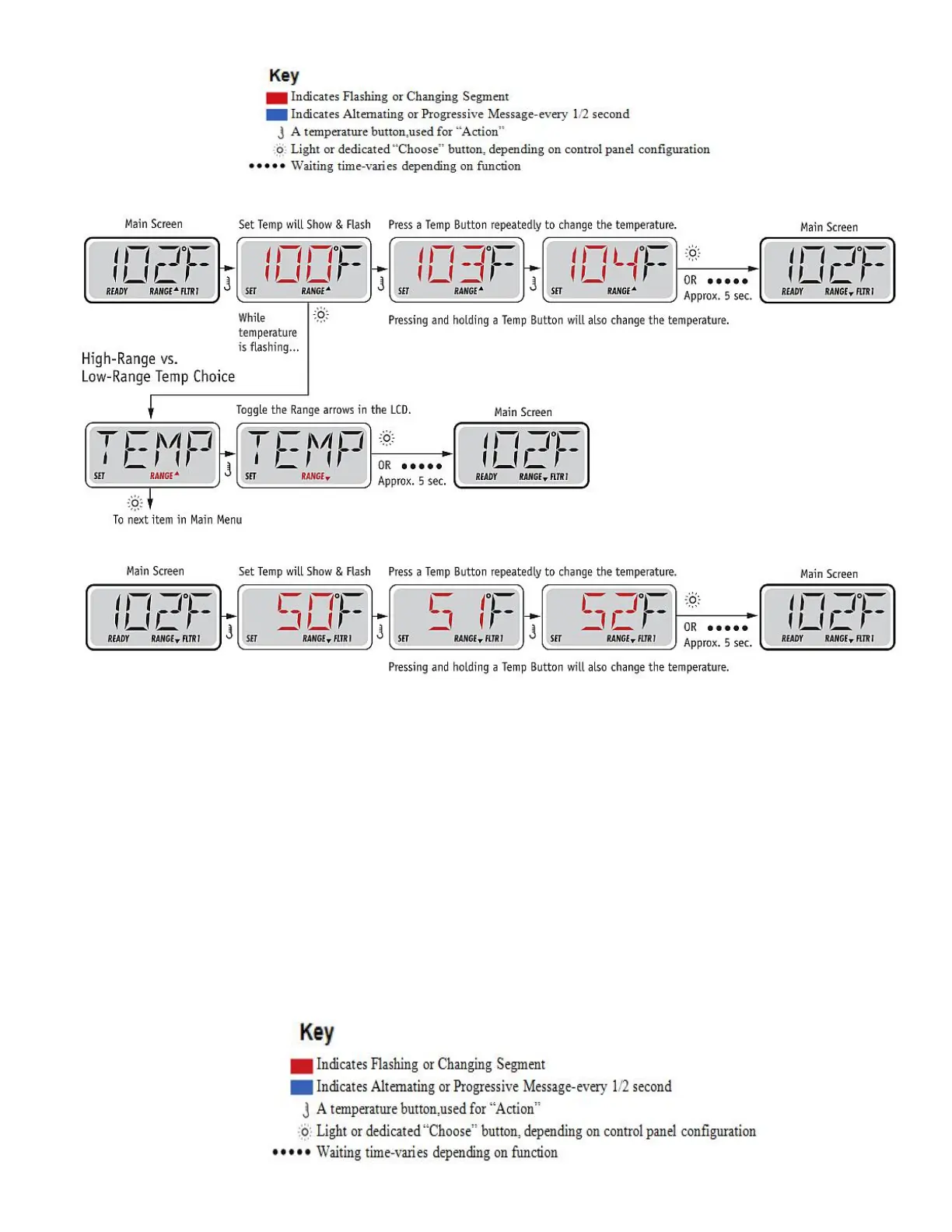 temperature display may not show a current temperature until the heater pump has been running for a minute or
