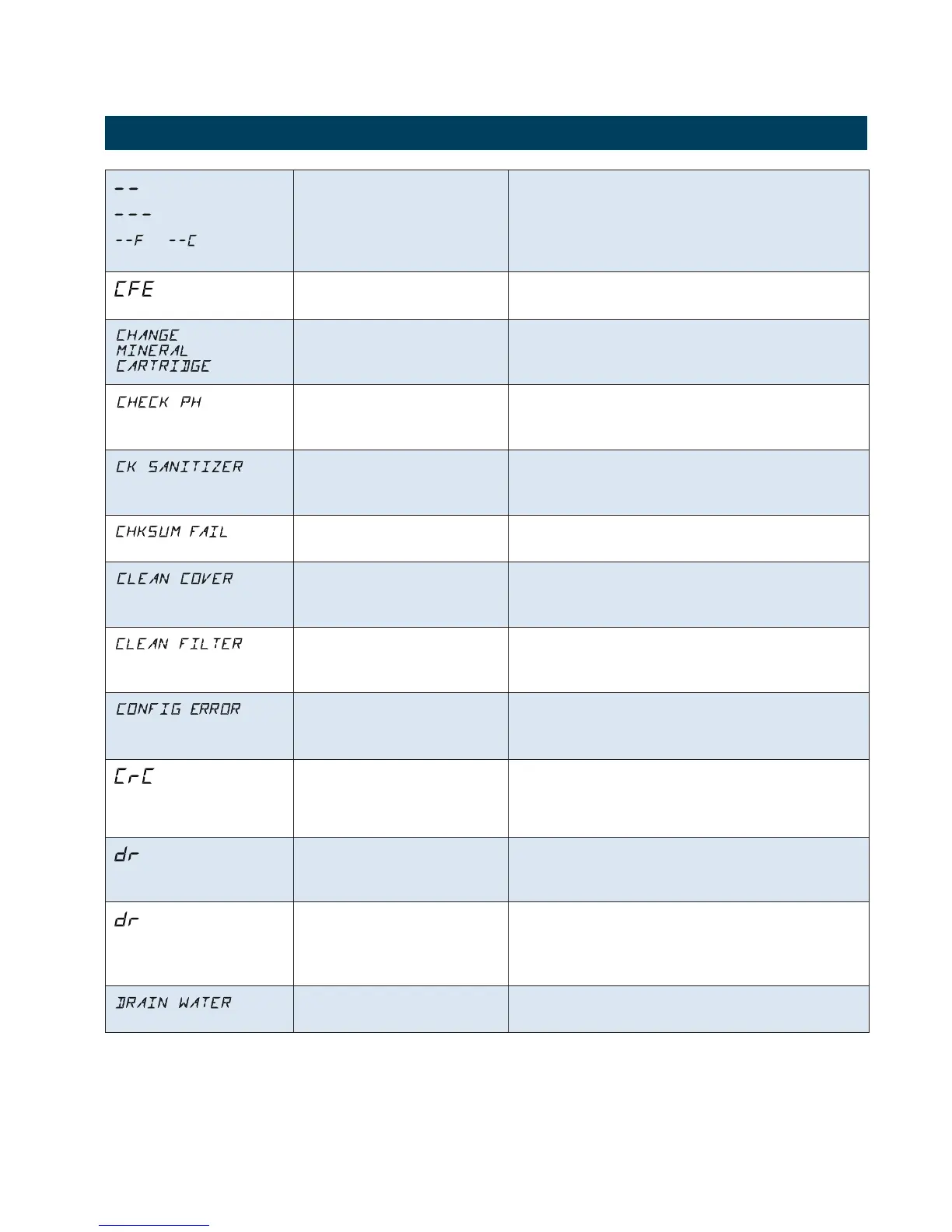 Balboa ML551 - Panel Message Reference Guide; - or -[ Message; CFE Message; CHANGE MINERAL CARTRIDGE Message