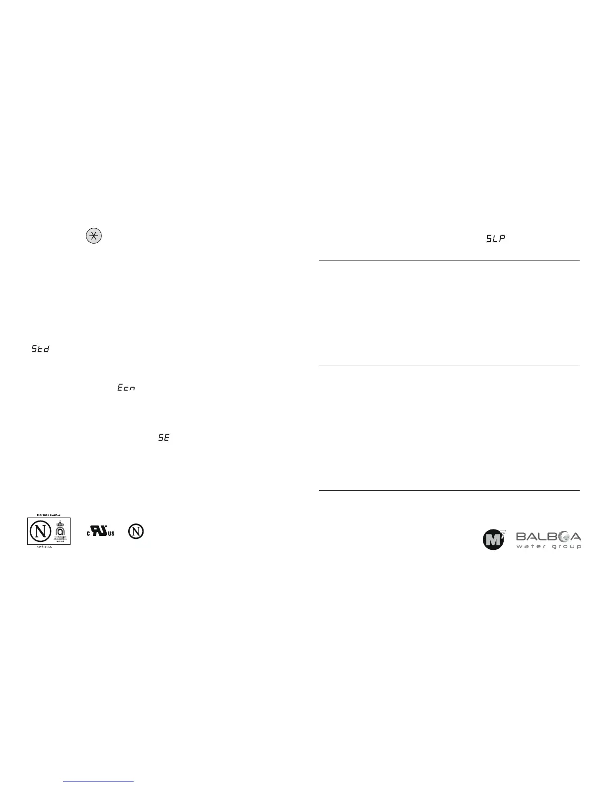 Sleep mode heats the spa to within 20°F (11°C) of the set