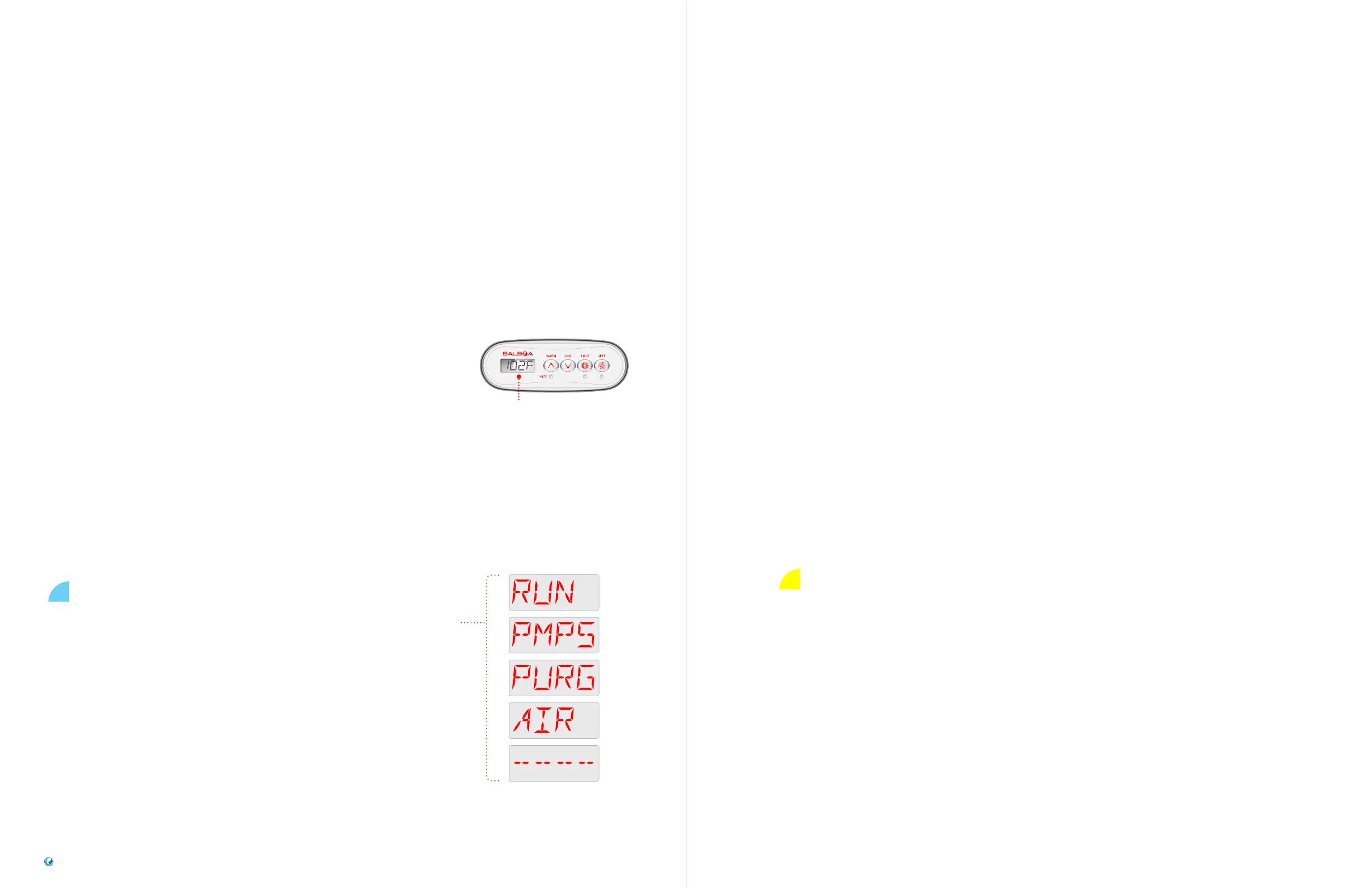 the LIGHT button (in Priming Mode only). A two-speed heater pump is controlled by