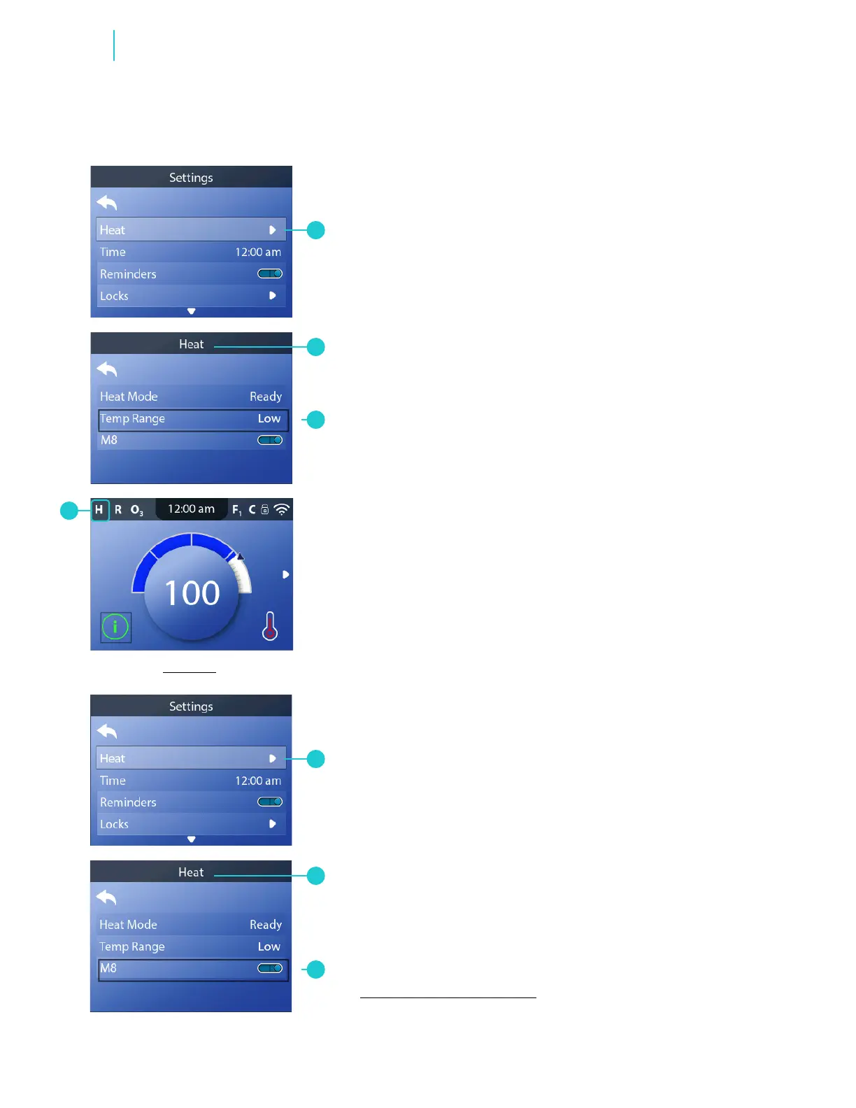 1 - Go to the Main menu, Settings, Heat (A) to view the Heat