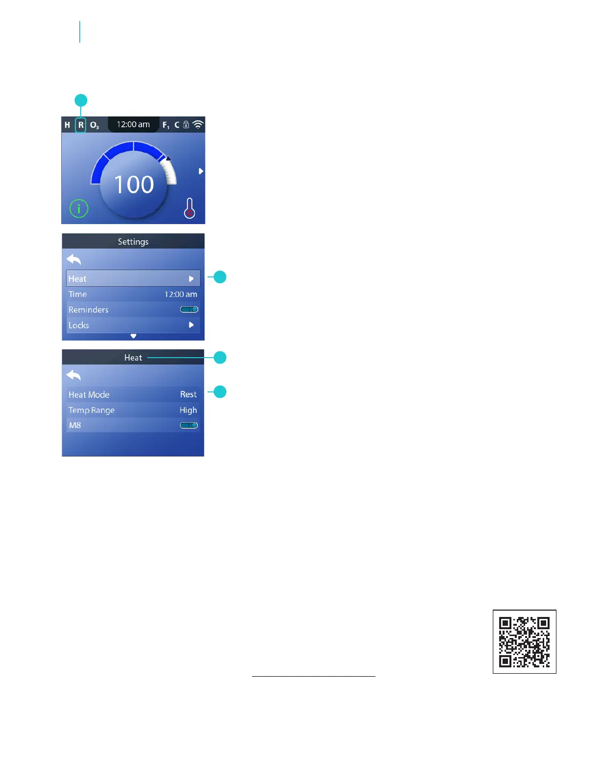 1 - Go to the Main menu, Settings, Heat (B) to view the