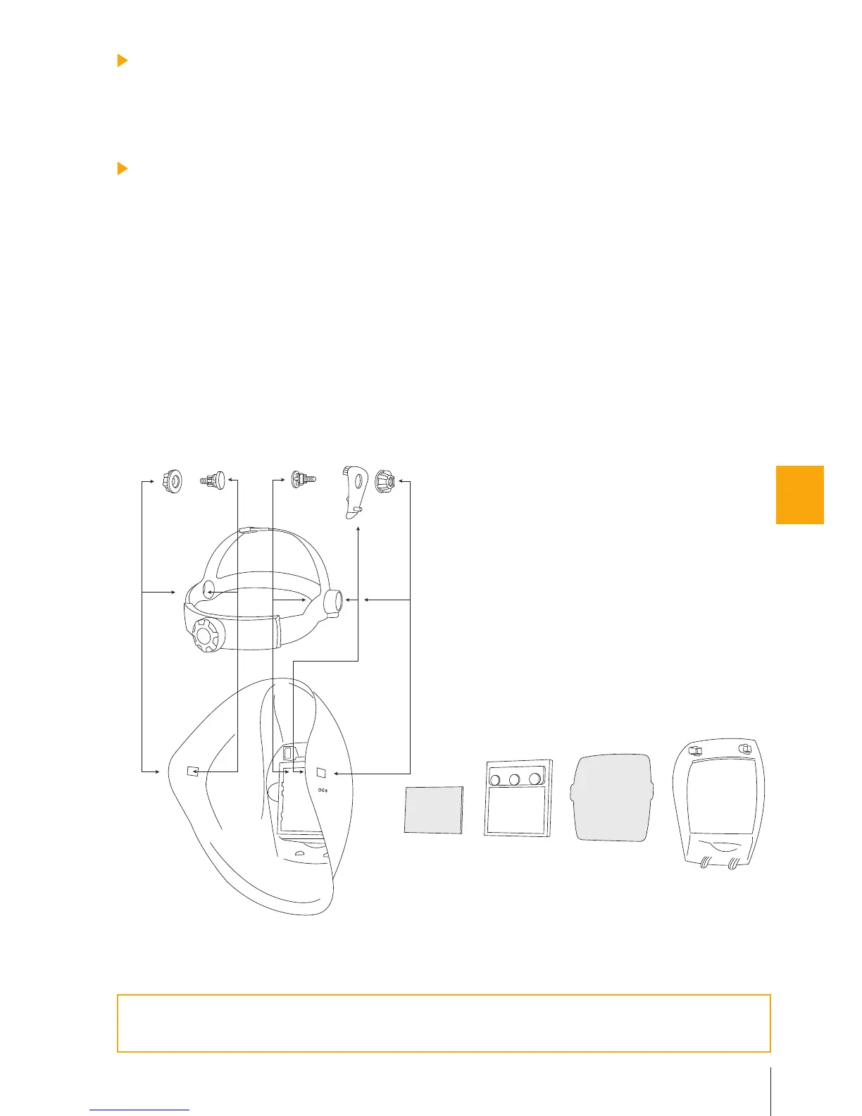 Osaďte nastavovanie sklonu (B) na pravej strane medzi skrutku (A) a kuklu helmy (F). Uistite