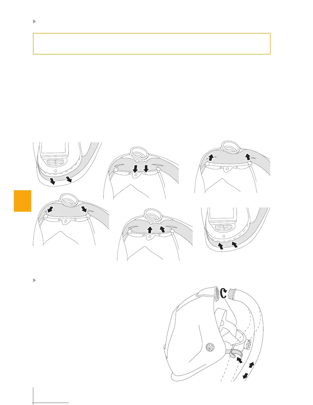 Iebīdiet sejas blīves turētāja apakšdaļu spraugā starp aizsargmasku un gaisa kanālu (6.).