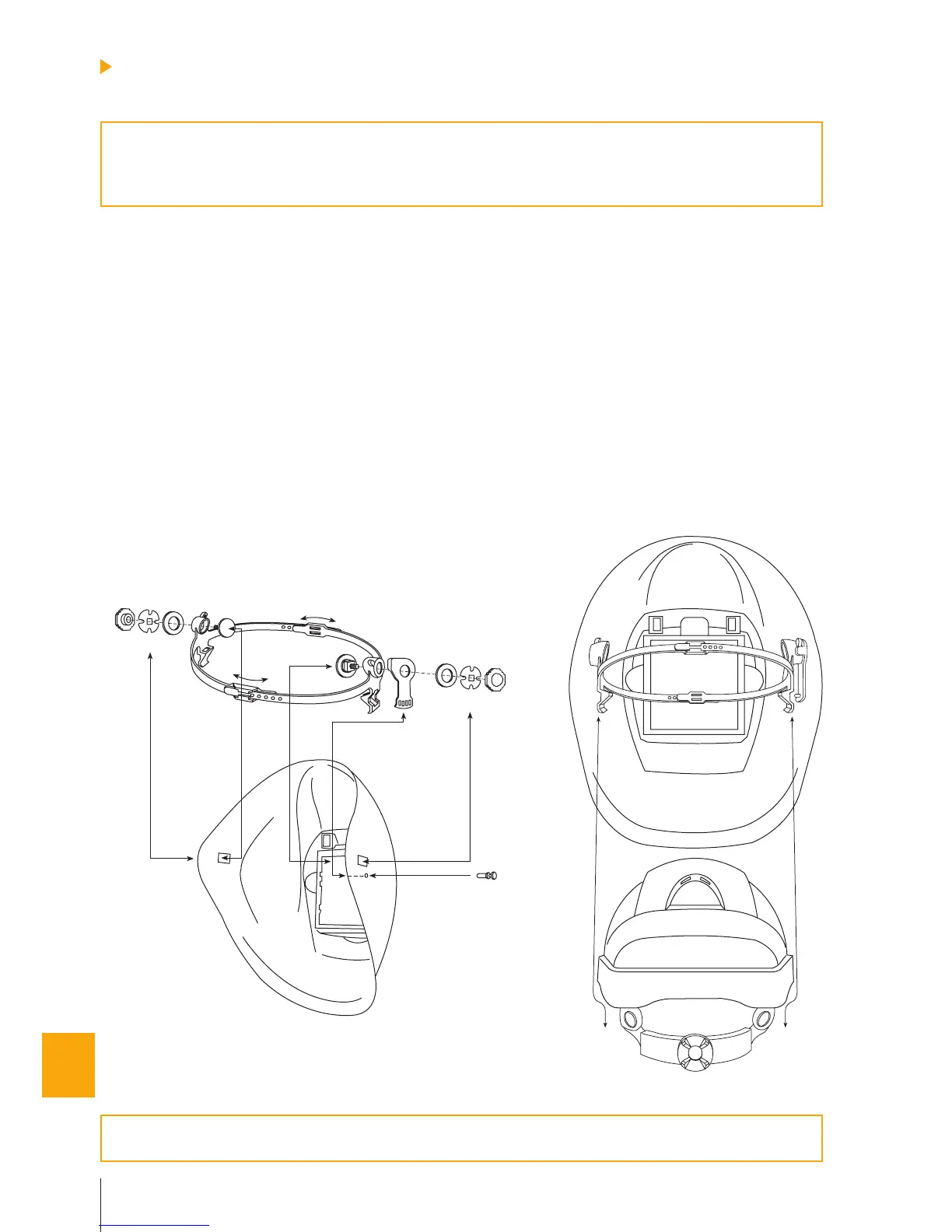 Plaats het kantelstuk (B) aan de rechterkant tussen de Speedy loop (E) en de helm (F). Zorg