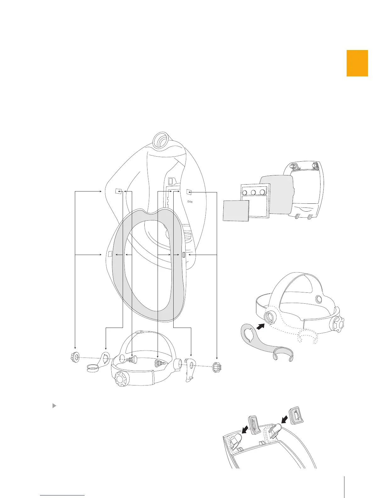 Der Zusammenbau der BH3 AIR Maske ist ähnlich wie im Abschnitt ZUSAMMENBAU DER BH3