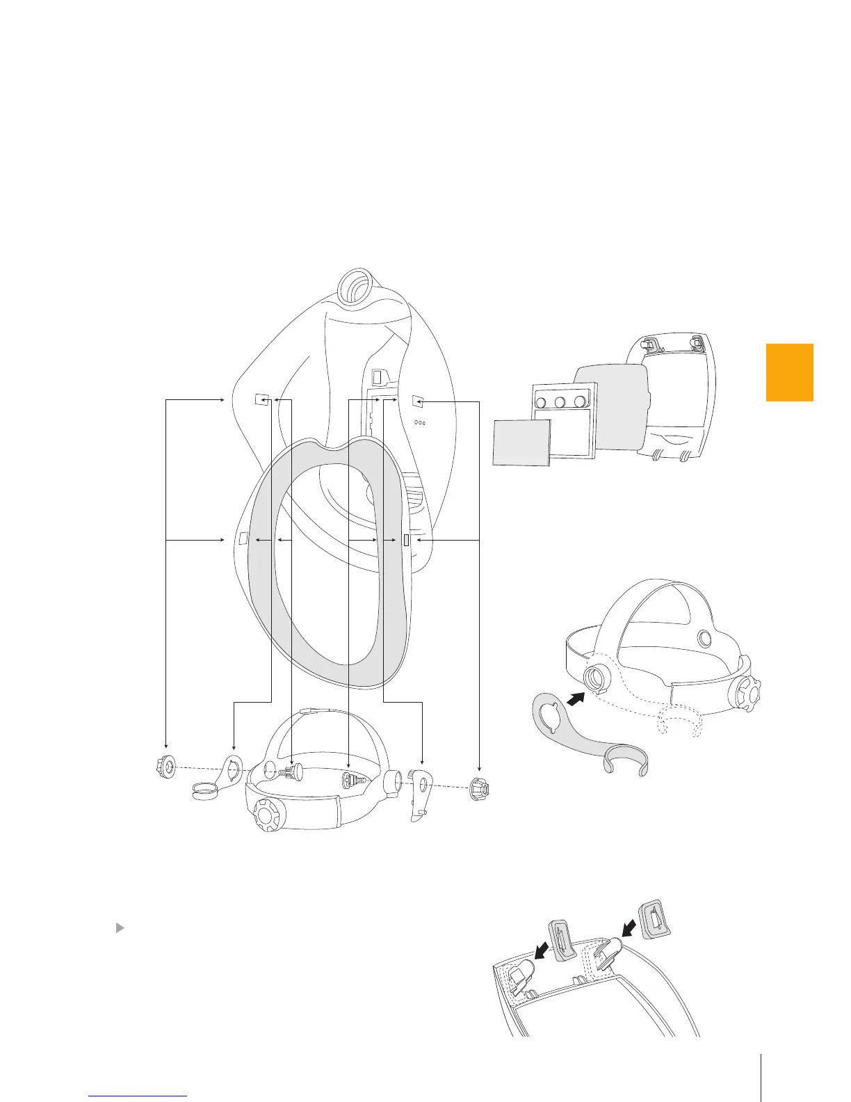 Garnitura pentru faţă trebuie asamblată în mod adecvat cu masca BH3 AIR. Poziţia acesteia faţă