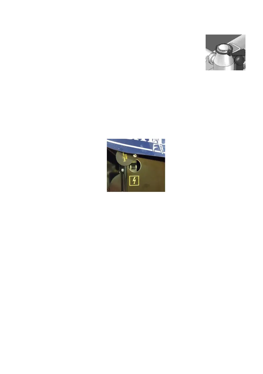 The main circuit switch/fuse is located behind a cover at the right side of the chassis. It is