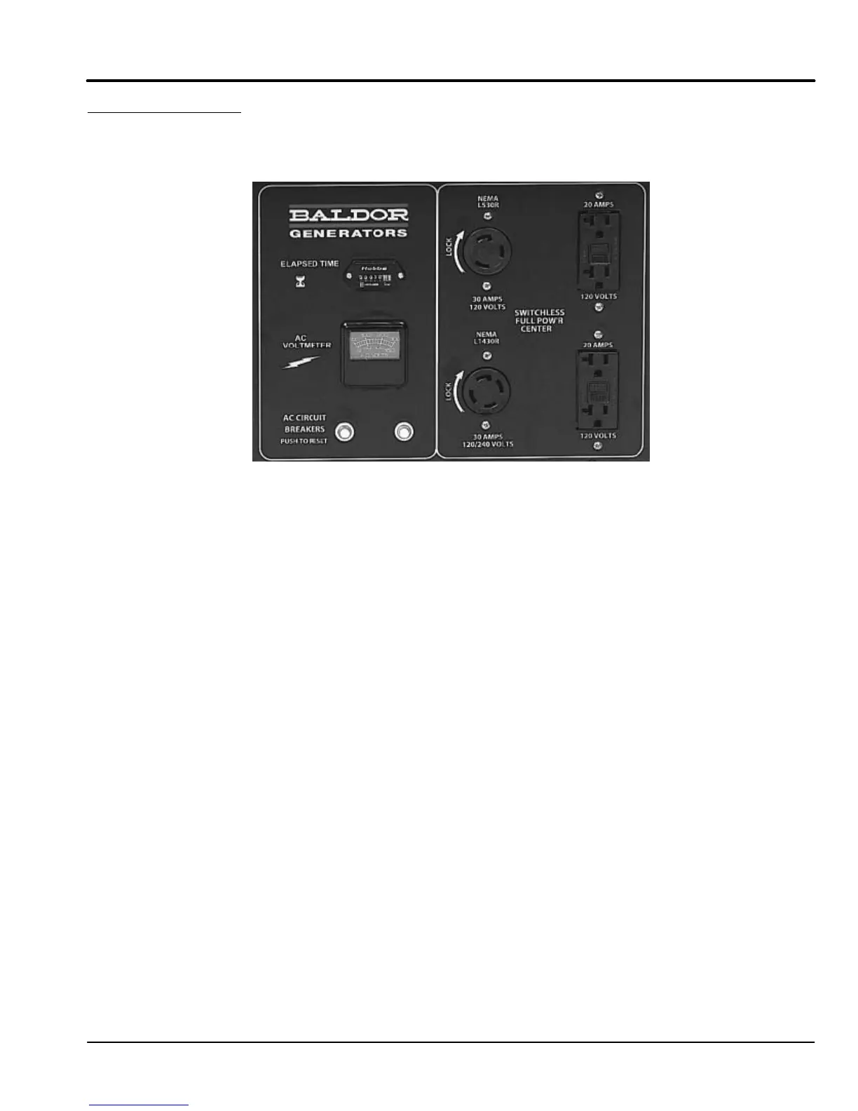 Note: The nominal voltage produced by the generator at each receptacle is 120VAC or 240VAC.