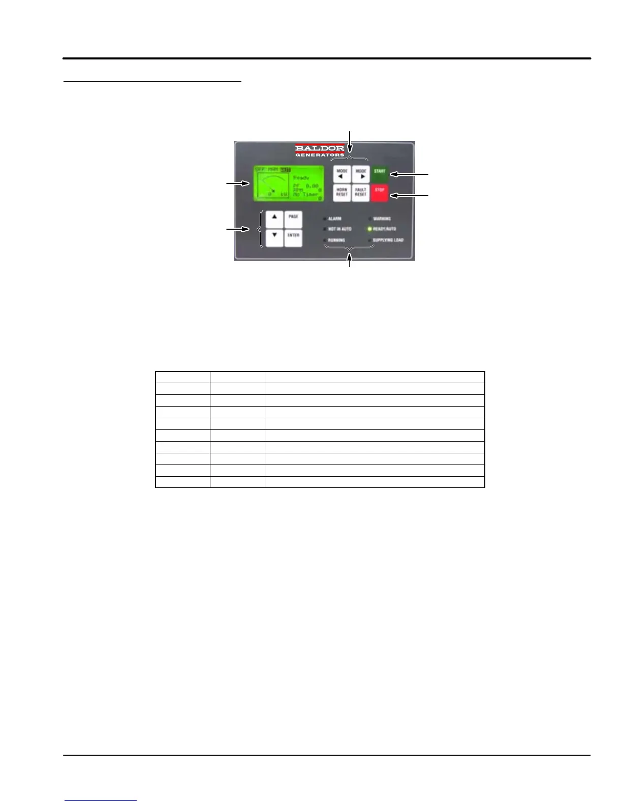 Ready/Auto (green) − Control is in Auto mode and ready to provide standby power.