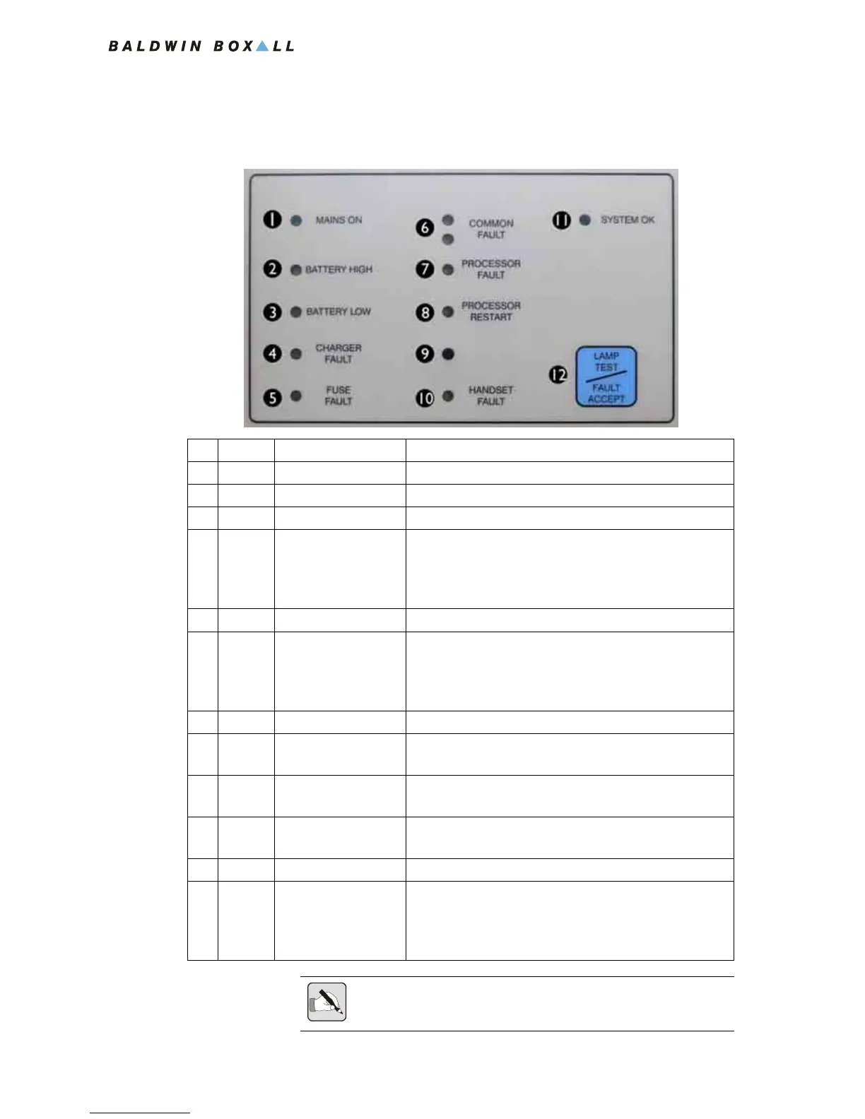 10 Yellow Handset Fault Will illuminate if a fault is detected with the Control