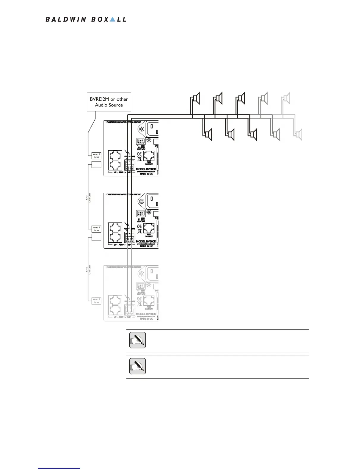 NOTE: A maximum of 4 300W amplifier modules can be paralleled