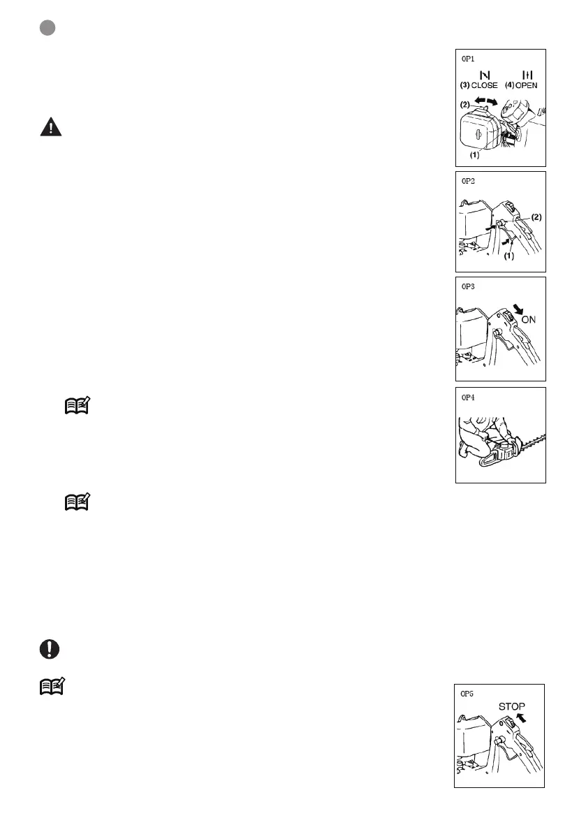 4. Rest the unit on a rm place. Pull the starter knob quickly (OP4).